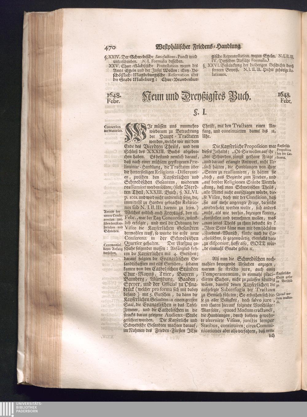 Fünffter Theil (1735) Worinnen enthalten, was vom Schluß des Jahrs 1647. biß in den Monath Junium des Jahrs 1648. zwischen Jhro Römisch-Kayserlichen Majestät, dann den Beyden Cronen Franckreich und Schweden, ingleichen des Heiligen Römischen Reichs Chur-Fürsten, Fürsten und Ständen, zu Oßnabrück und Münster gehandelt worden