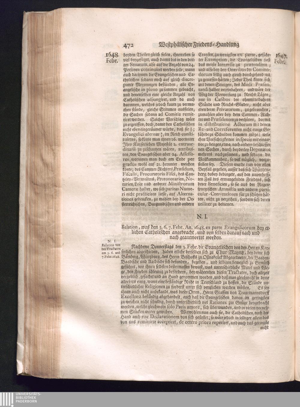 Fünffter Theil (1735) Worinnen enthalten, was vom Schluß des Jahrs 1647. biß in den Monath Junium des Jahrs 1648. zwischen Jhro Römisch-Kayserlichen Majestät, dann den Beyden Cronen Franckreich und Schweden, ingleichen des Heiligen Römischen Reichs Chur-Fürsten, Fürsten und Ständen, zu Oßnabrück und Münster gehandelt worden