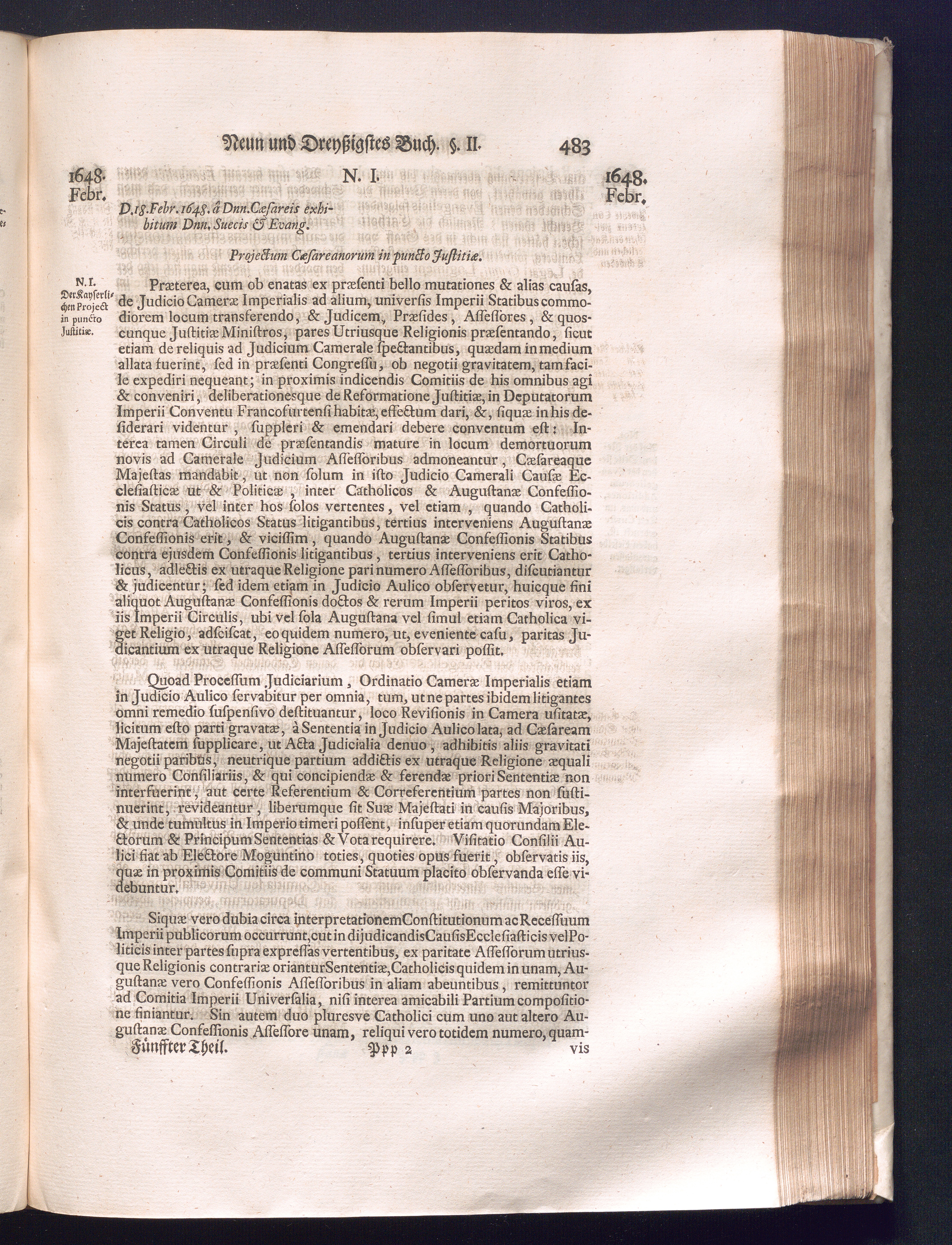 Fünffter Theil (1735) Worinnen enthalten, was vom Schluß des Jahrs 1647. biß in den Monath Junium des Jahrs 1648. zwischen Jhro Römisch-Kayserlichen Majestät, dann den Beyden Cronen Franckreich und Schweden, ingleichen des Heiligen Römischen Reichs Chur-Fürsten, Fürsten und Ständen, zu Oßnabrück und Münster gehandelt worden