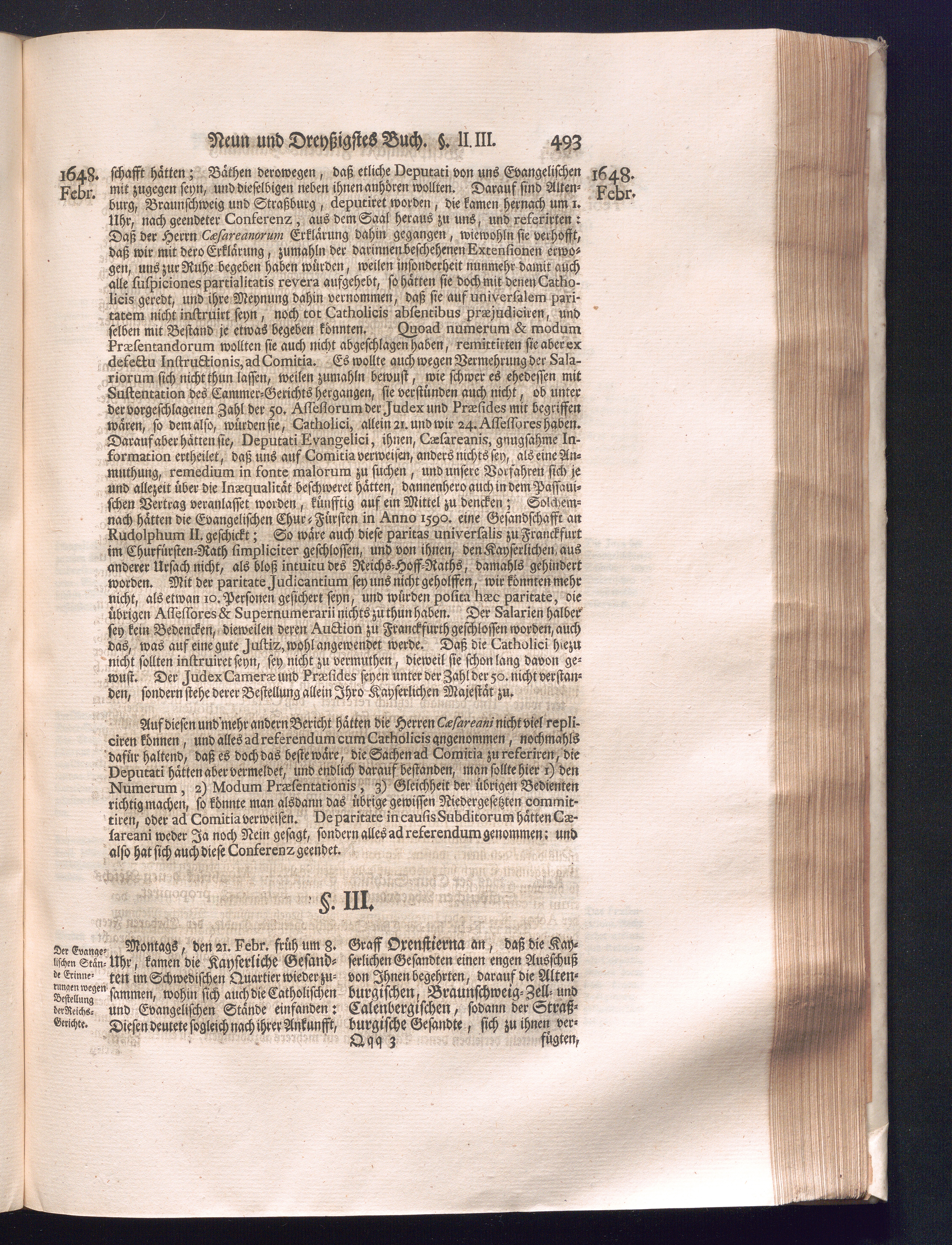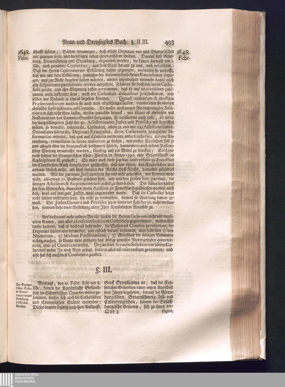 Fünffter Theil (1735) Worinnen enthalten, was vom Schluß des Jahrs 1647. biß in den Monath Junium des Jahrs 1648. zwischen Jhro Römisch-Kayserlichen Majestät, dann den Beyden Cronen Franckreich und Schweden, ingleichen des Heiligen Römischen Reichs Chur-Fürsten, Fürsten und Ständen, zu Oßnabrück und Münster gehandelt worden