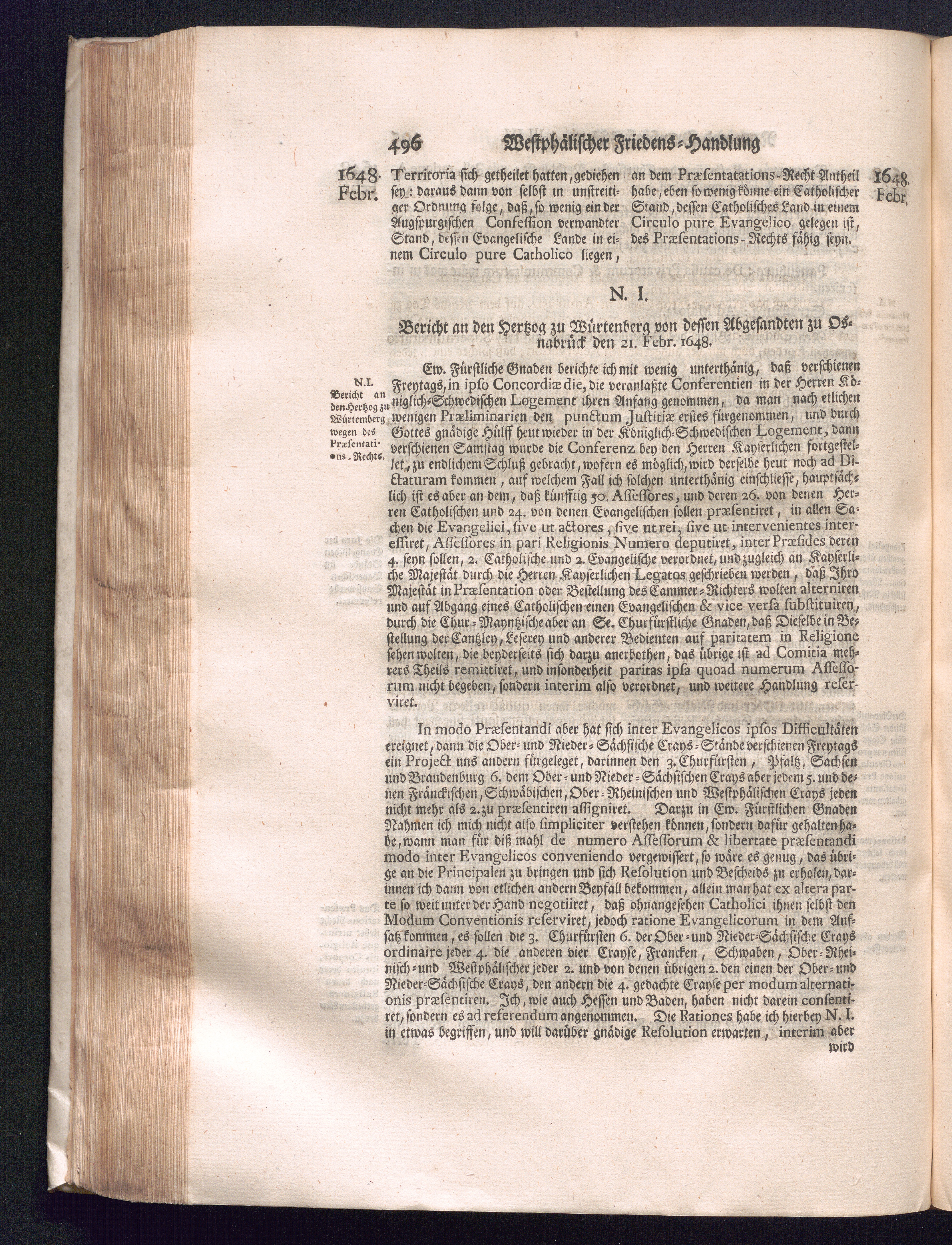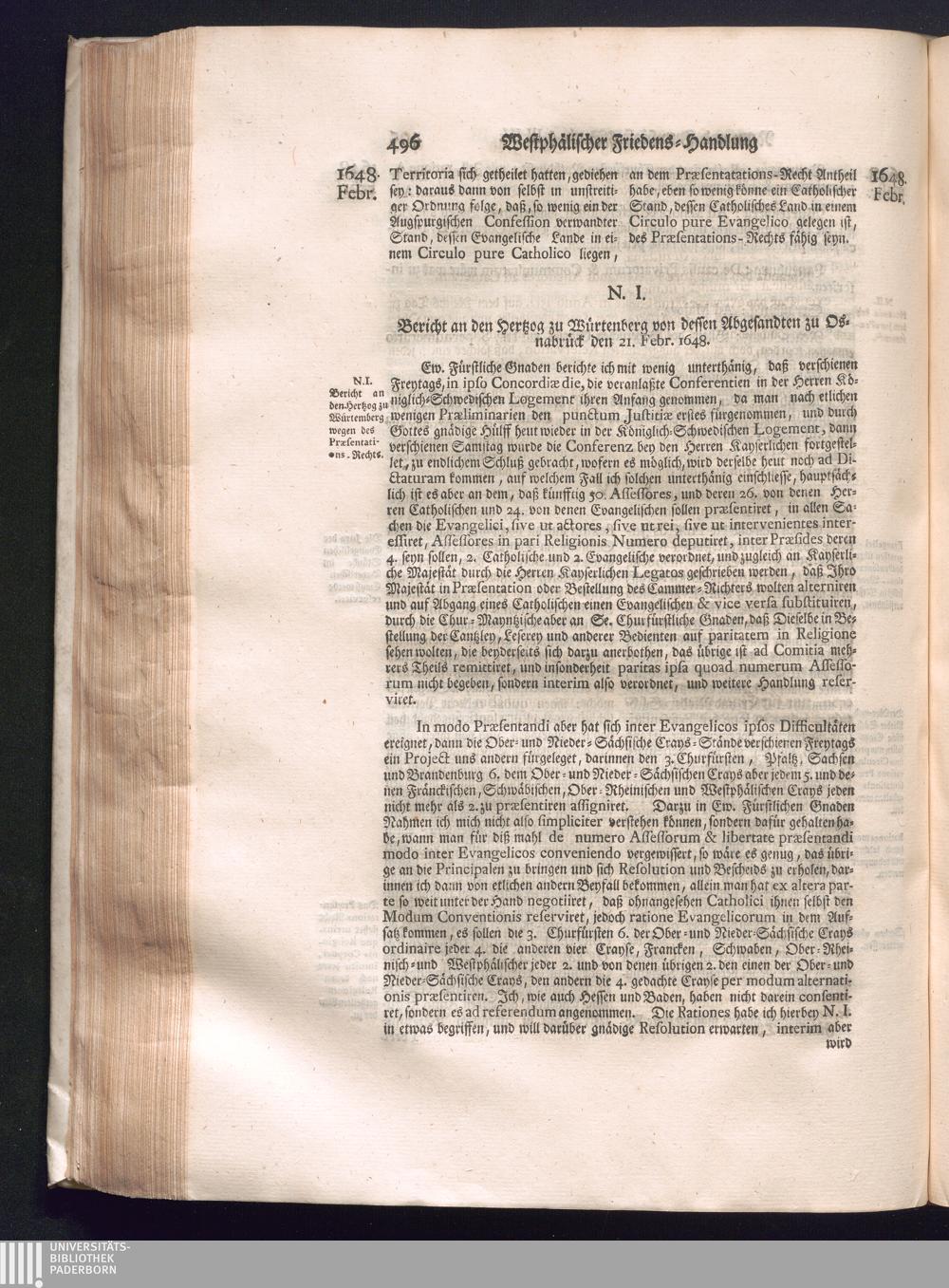 Fünffter Theil (1735) Worinnen enthalten, was vom Schluß des Jahrs 1647. biß in den Monath Junium des Jahrs 1648. zwischen Jhro Römisch-Kayserlichen Majestät, dann den Beyden Cronen Franckreich und Schweden, ingleichen des Heiligen Römischen Reichs Chur-Fürsten, Fürsten und Ständen, zu Oßnabrück und Münster gehandelt worden