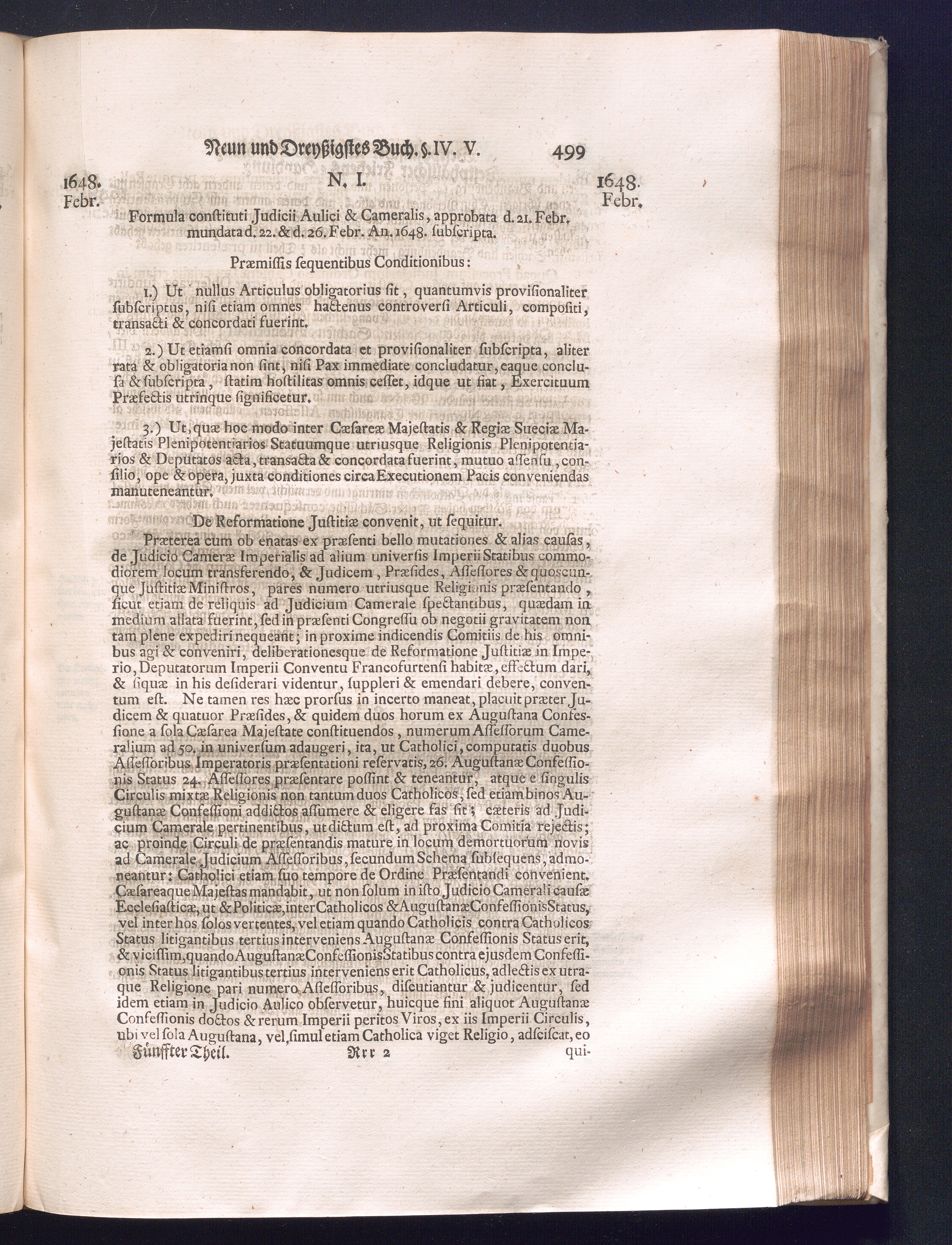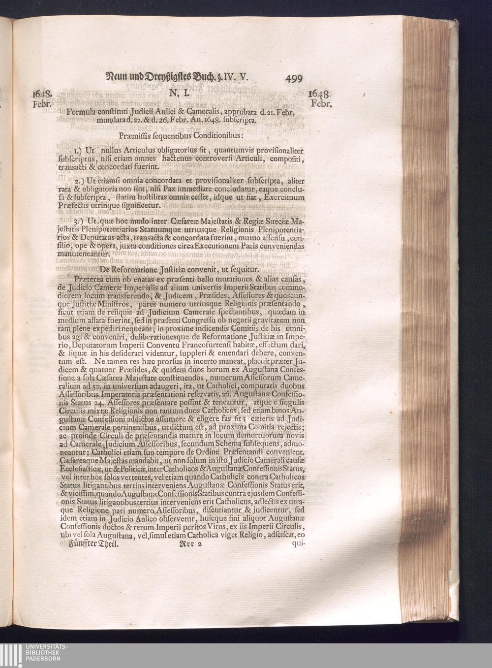 Fünffter Theil (1735) Worinnen enthalten, was vom Schluß des Jahrs 1647. biß in den Monath Junium des Jahrs 1648. zwischen Jhro Römisch-Kayserlichen Majestät, dann den Beyden Cronen Franckreich und Schweden, ingleichen des Heiligen Römischen Reichs Chur-Fürsten, Fürsten und Ständen, zu Oßnabrück und Münster gehandelt worden
