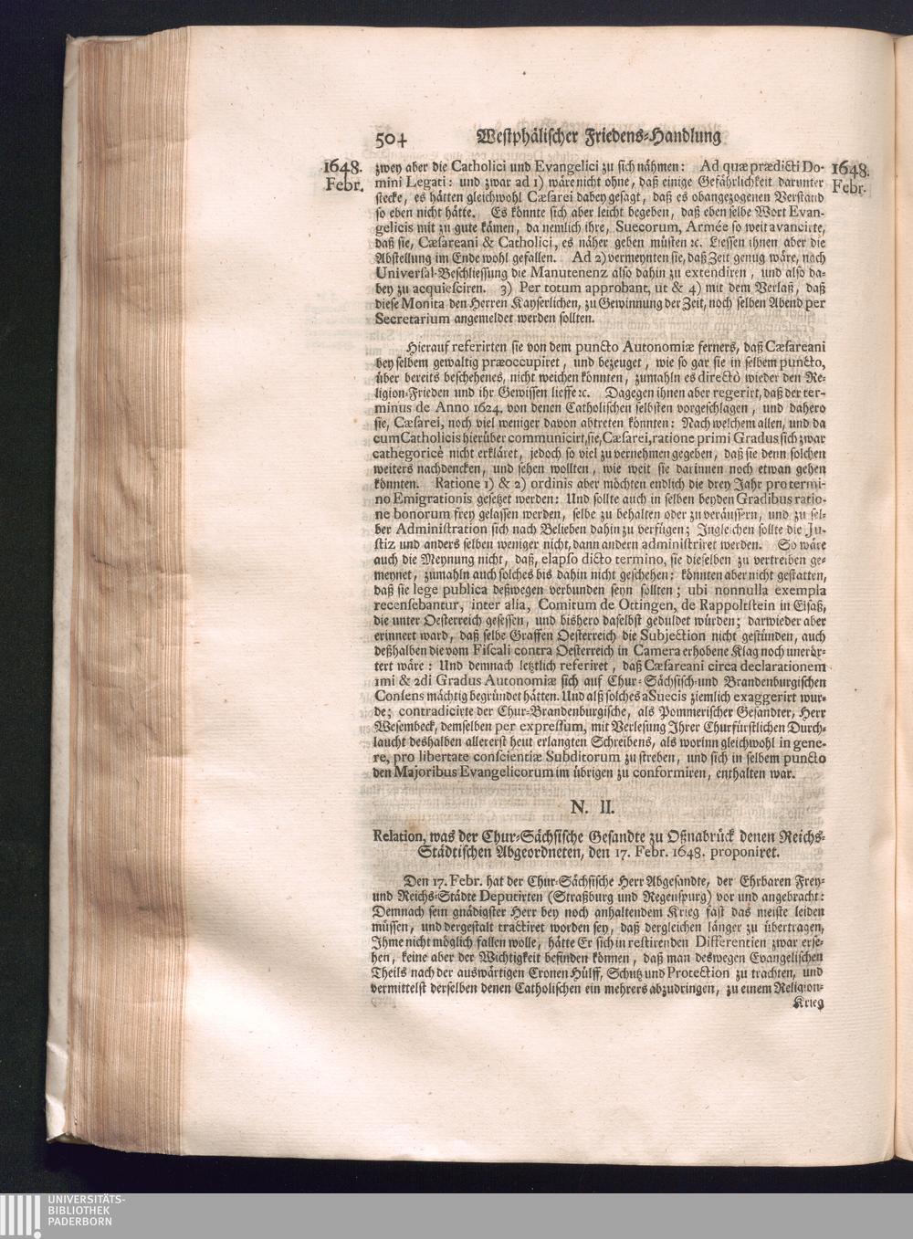 Fünffter Theil (1735) Worinnen enthalten, was vom Schluß des Jahrs 1647. biß in den Monath Junium des Jahrs 1648. zwischen Jhro Römisch-Kayserlichen Majestät, dann den Beyden Cronen Franckreich und Schweden, ingleichen des Heiligen Römischen Reichs Chur-Fürsten, Fürsten und Ständen, zu Oßnabrück und Münster gehandelt worden