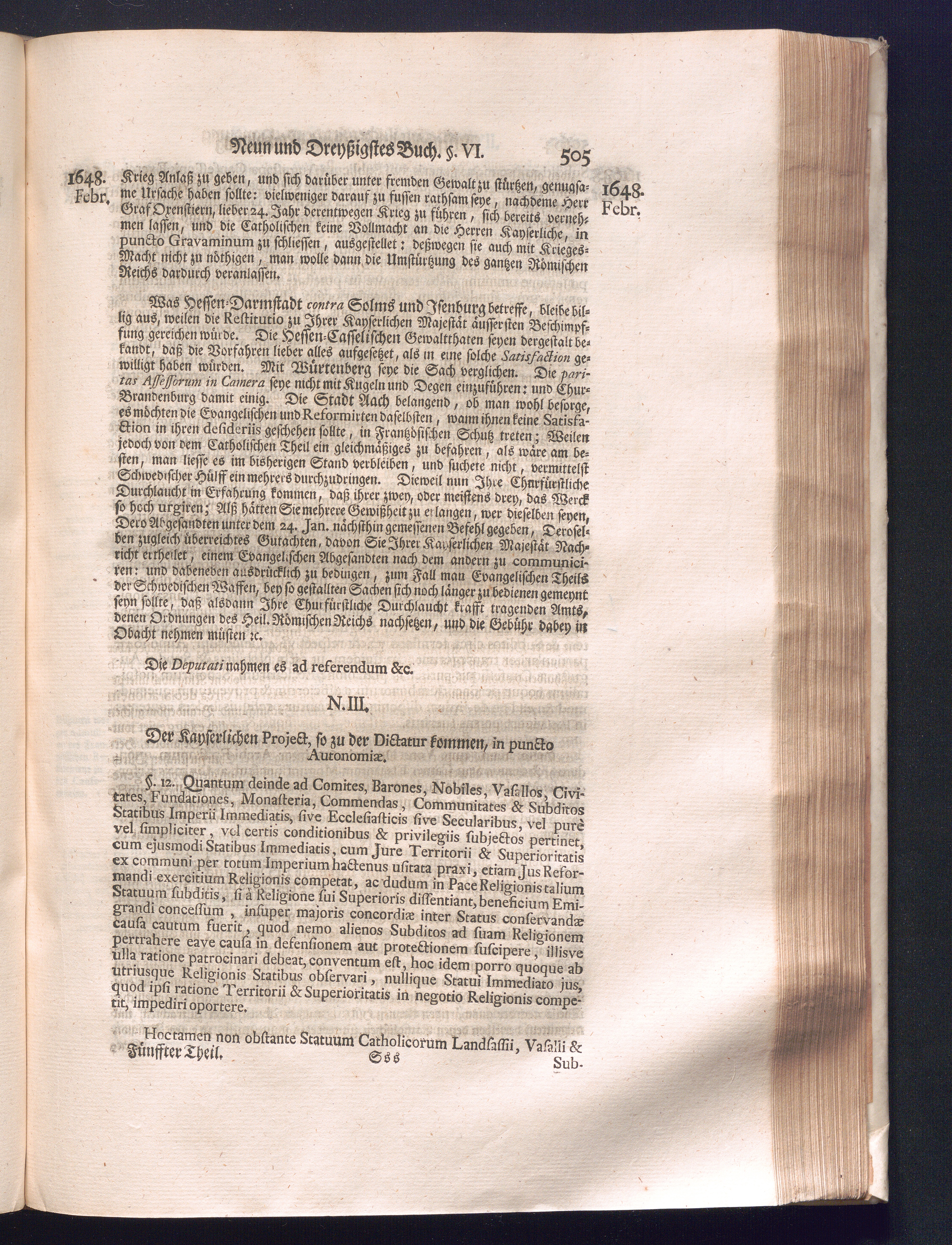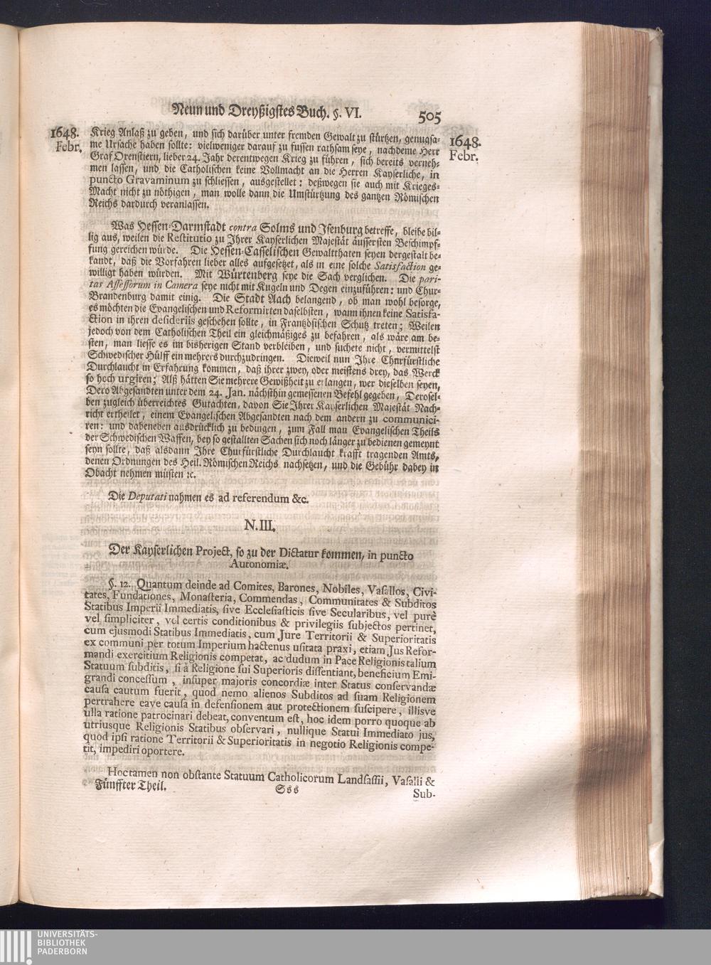 Fünffter Theil (1735) Worinnen enthalten, was vom Schluß des Jahrs 1647. biß in den Monath Junium des Jahrs 1648. zwischen Jhro Römisch-Kayserlichen Majestät, dann den Beyden Cronen Franckreich und Schweden, ingleichen des Heiligen Römischen Reichs Chur-Fürsten, Fürsten und Ständen, zu Oßnabrück und Münster gehandelt worden