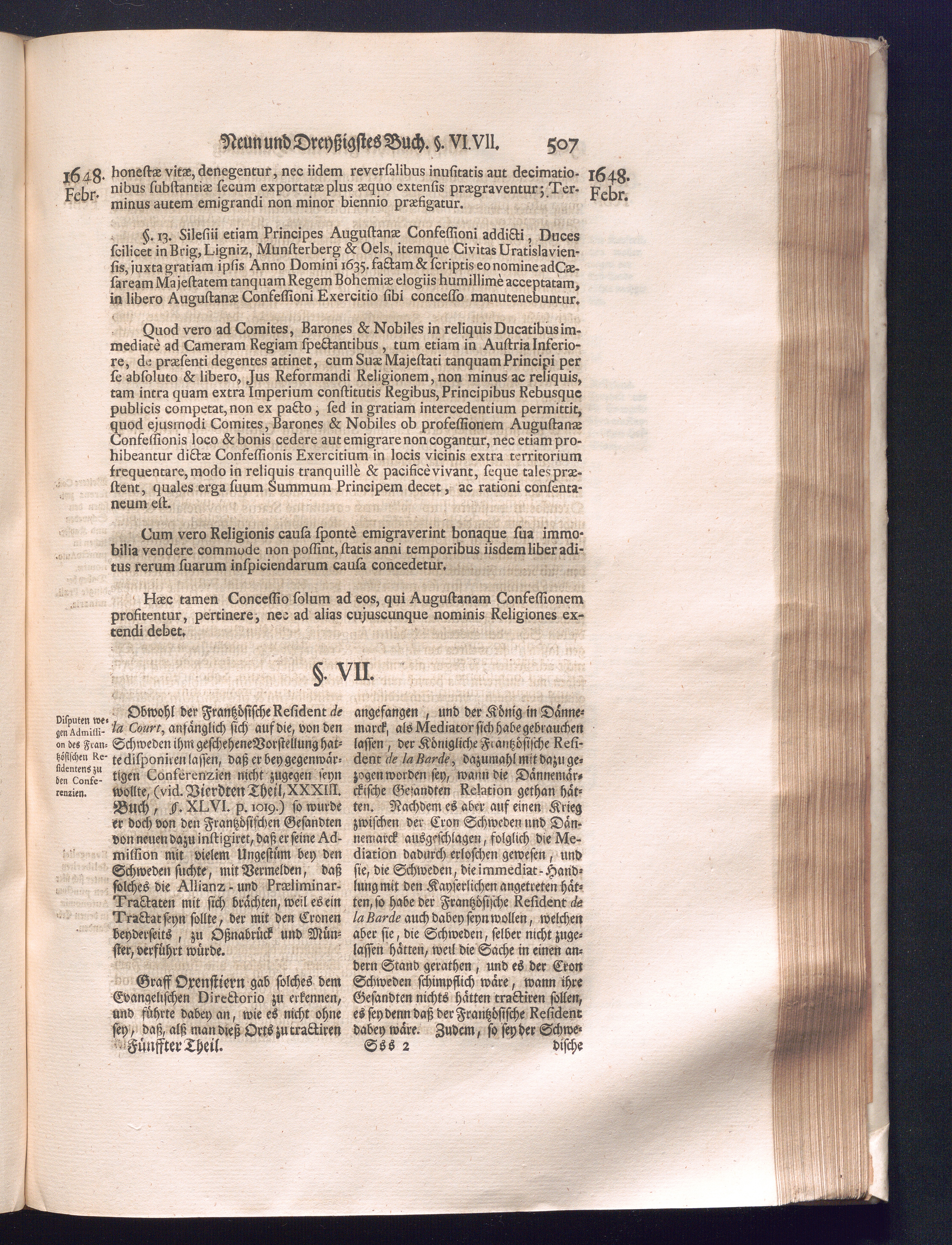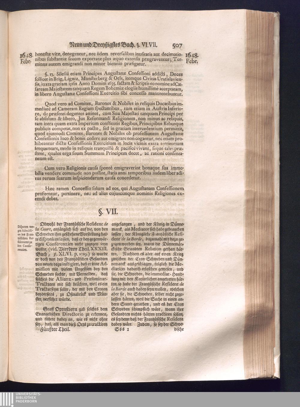 Fünffter Theil (1735) Worinnen enthalten, was vom Schluß des Jahrs 1647. biß in den Monath Junium des Jahrs 1648. zwischen Jhro Römisch-Kayserlichen Majestät, dann den Beyden Cronen Franckreich und Schweden, ingleichen des Heiligen Römischen Reichs Chur-Fürsten, Fürsten und Ständen, zu Oßnabrück und Münster gehandelt worden