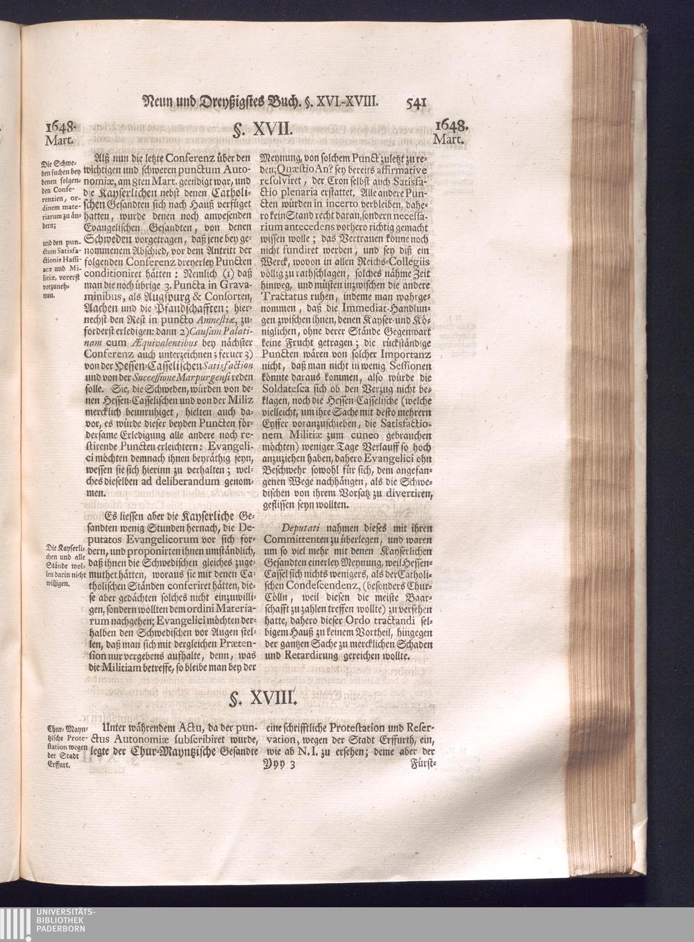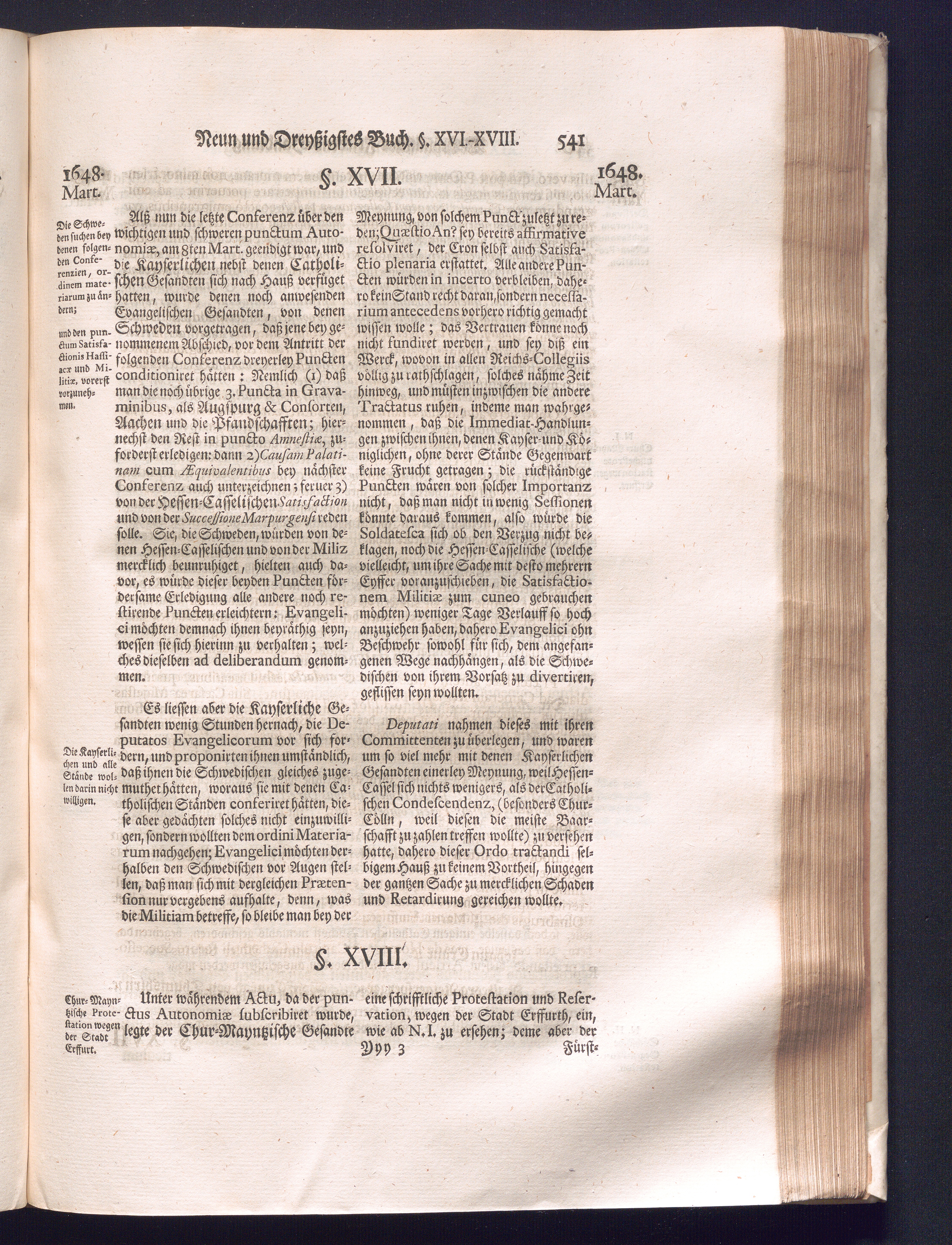 Fünffter Theil (1735) Worinnen enthalten, was vom Schluß des Jahrs 1647. biß in den Monath Junium des Jahrs 1648. zwischen Jhro Römisch-Kayserlichen Majestät, dann den Beyden Cronen Franckreich und Schweden, ingleichen des Heiligen Römischen Reichs Chur-Fürsten, Fürsten und Ständen, zu Oßnabrück und Münster gehandelt worden