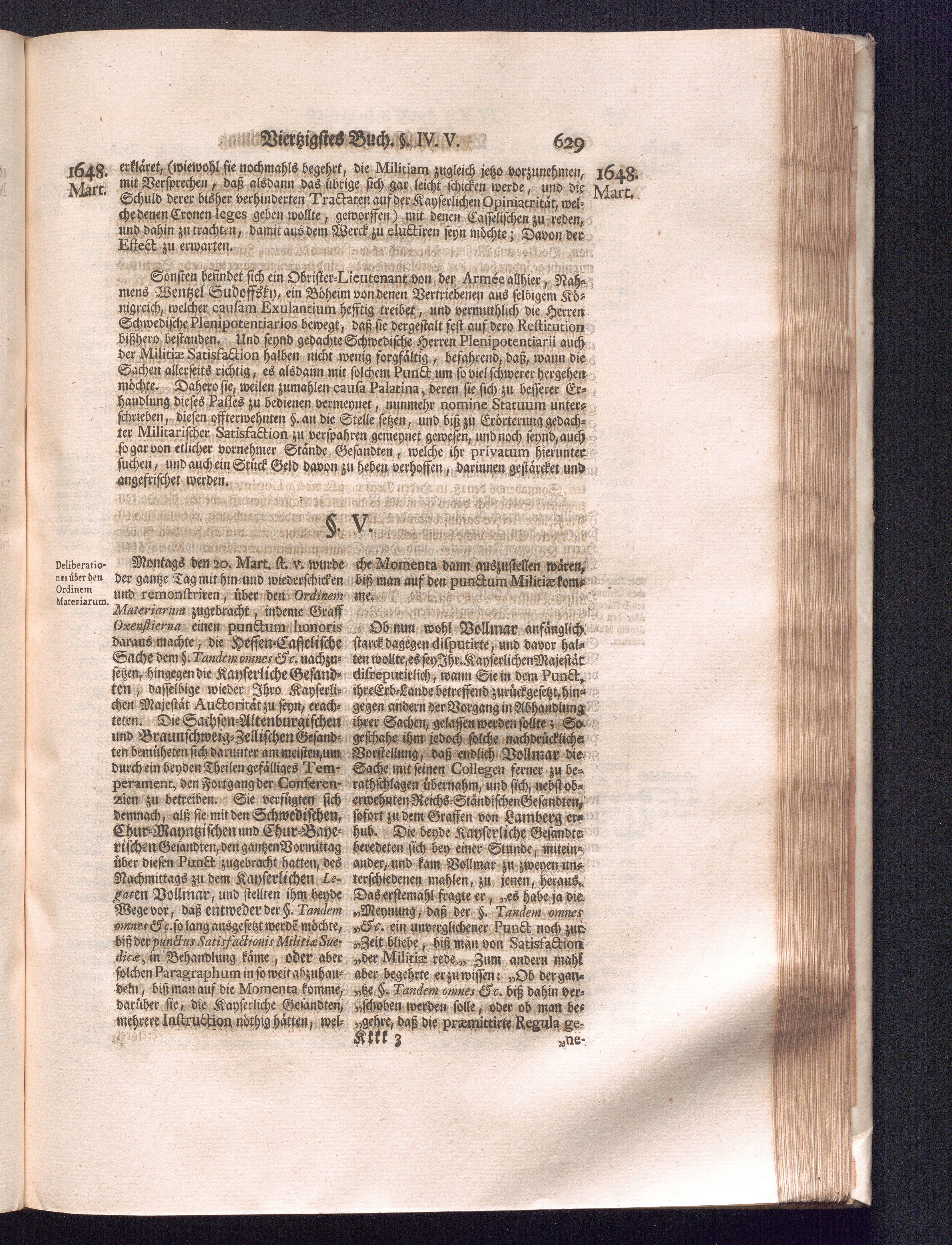 Fünffter Theil (1735) Worinnen enthalten, was vom Schluß des Jahrs 1647. biß in den Monath Junium des Jahrs 1648. zwischen Jhro Römisch-Kayserlichen Majestät, dann den Beyden Cronen Franckreich und Schweden, ingleichen des Heiligen Römischen Reichs Chur-Fürsten, Fürsten und Ständen, zu Oßnabrück und Münster gehandelt worden