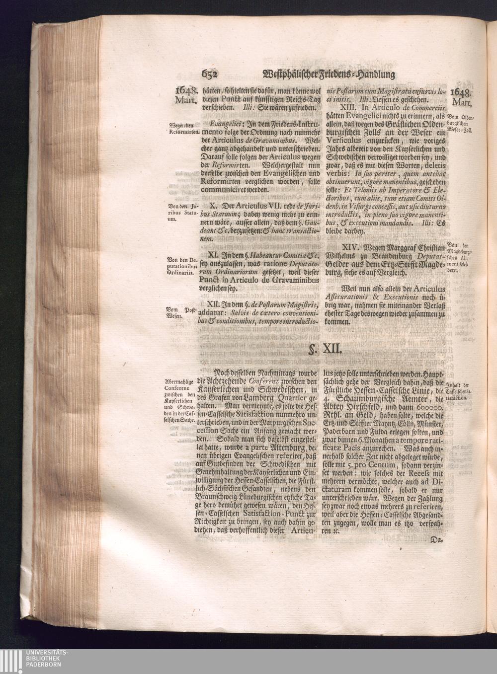 Fünffter Theil (1735) Worinnen enthalten, was vom Schluß des Jahrs 1647. biß in den Monath Junium des Jahrs 1648. zwischen Jhro Römisch-Kayserlichen Majestät, dann den Beyden Cronen Franckreich und Schweden, ingleichen des Heiligen Römischen Reichs Chur-Fürsten, Fürsten und Ständen, zu Oßnabrück und Münster gehandelt worden