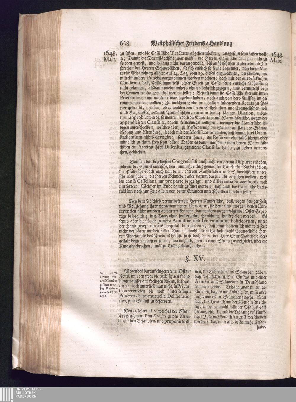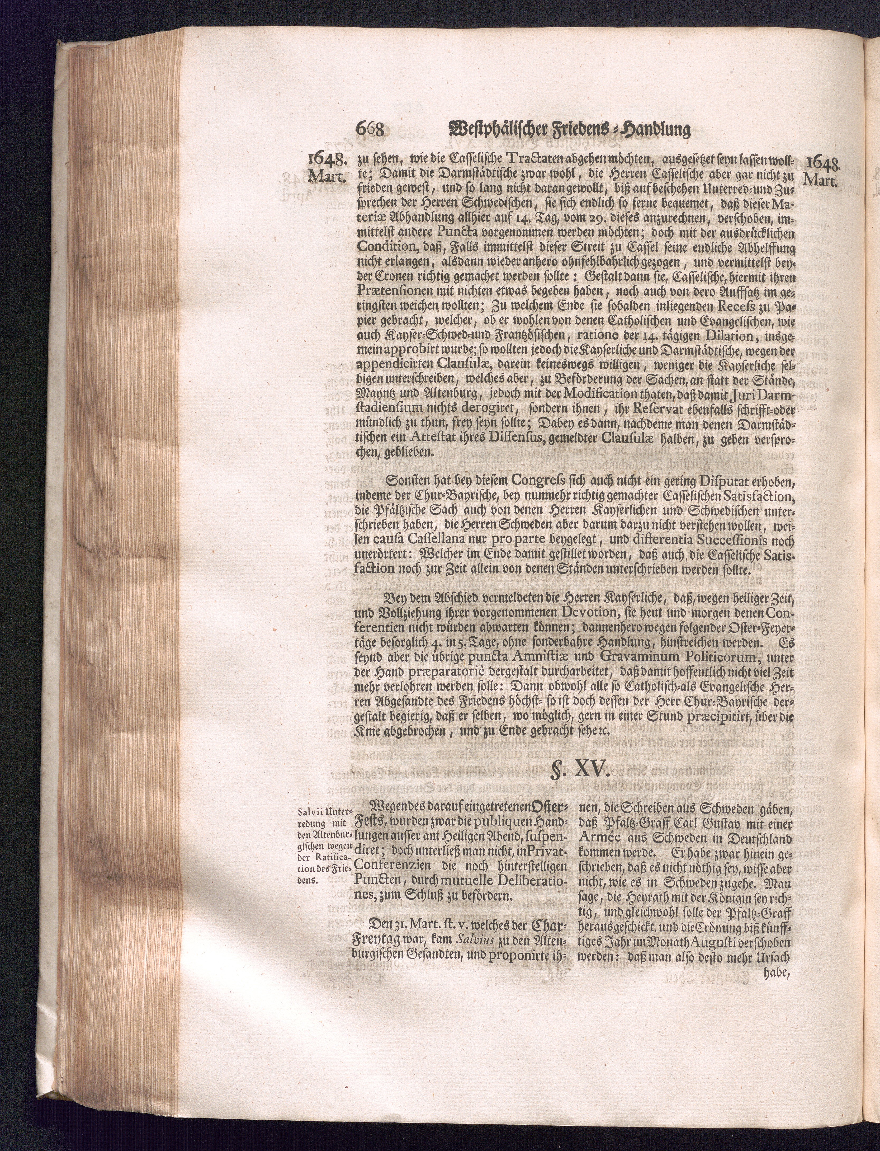 Fünffter Theil (1735) Worinnen enthalten, was vom Schluß des Jahrs 1647. biß in den Monath Junium des Jahrs 1648. zwischen Jhro Römisch-Kayserlichen Majestät, dann den Beyden Cronen Franckreich und Schweden, ingleichen des Heiligen Römischen Reichs Chur-Fürsten, Fürsten und Ständen, zu Oßnabrück und Münster gehandelt worden