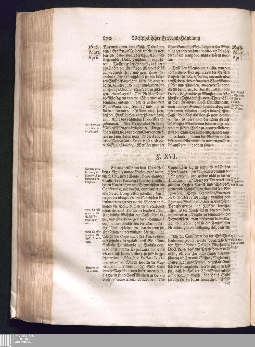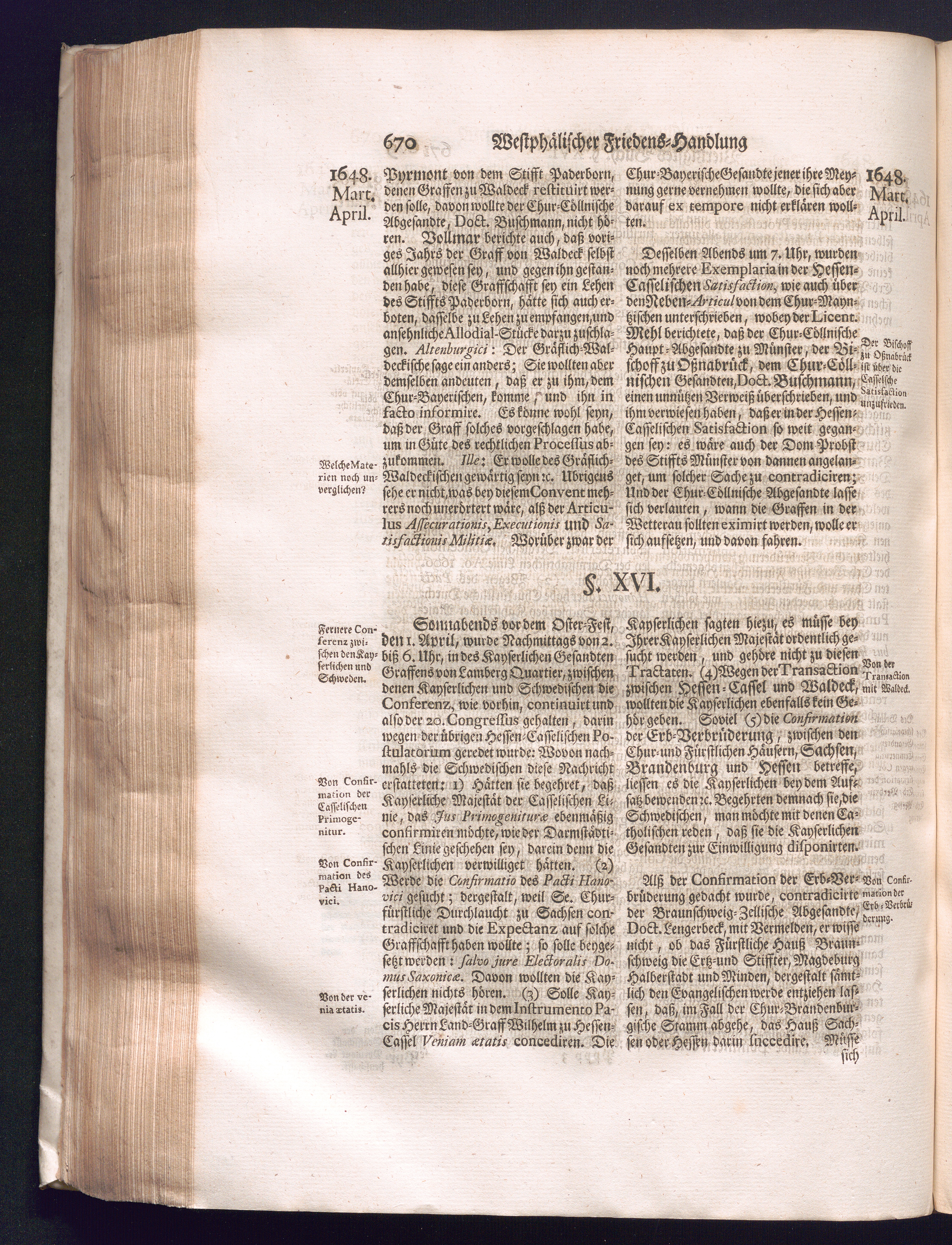 Fünffter Theil (1735) Worinnen enthalten, was vom Schluß des Jahrs 1647. biß in den Monath Junium des Jahrs 1648. zwischen Jhro Römisch-Kayserlichen Majestät, dann den Beyden Cronen Franckreich und Schweden, ingleichen des Heiligen Römischen Reichs Chur-Fürsten, Fürsten und Ständen, zu Oßnabrück und Münster gehandelt worden