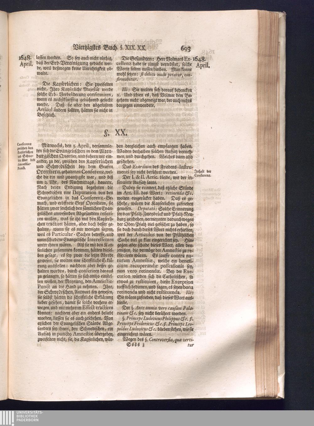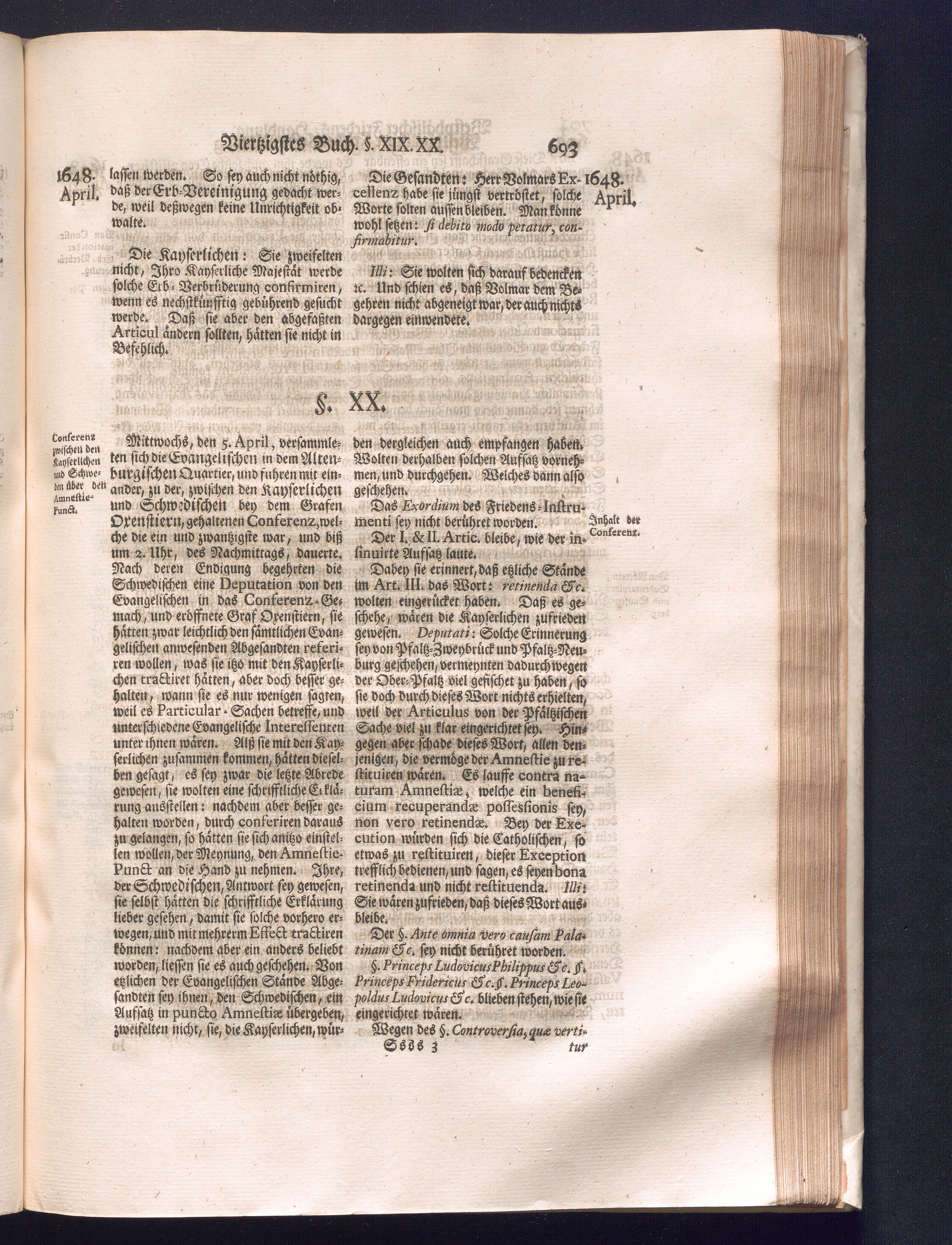 Fünffter Theil (1735) Worinnen enthalten, was vom Schluß des Jahrs 1647. biß in den Monath Junium des Jahrs 1648. zwischen Jhro Römisch-Kayserlichen Majestät, dann den Beyden Cronen Franckreich und Schweden, ingleichen des Heiligen Römischen Reichs Chur-Fürsten, Fürsten und Ständen, zu Oßnabrück und Münster gehandelt worden