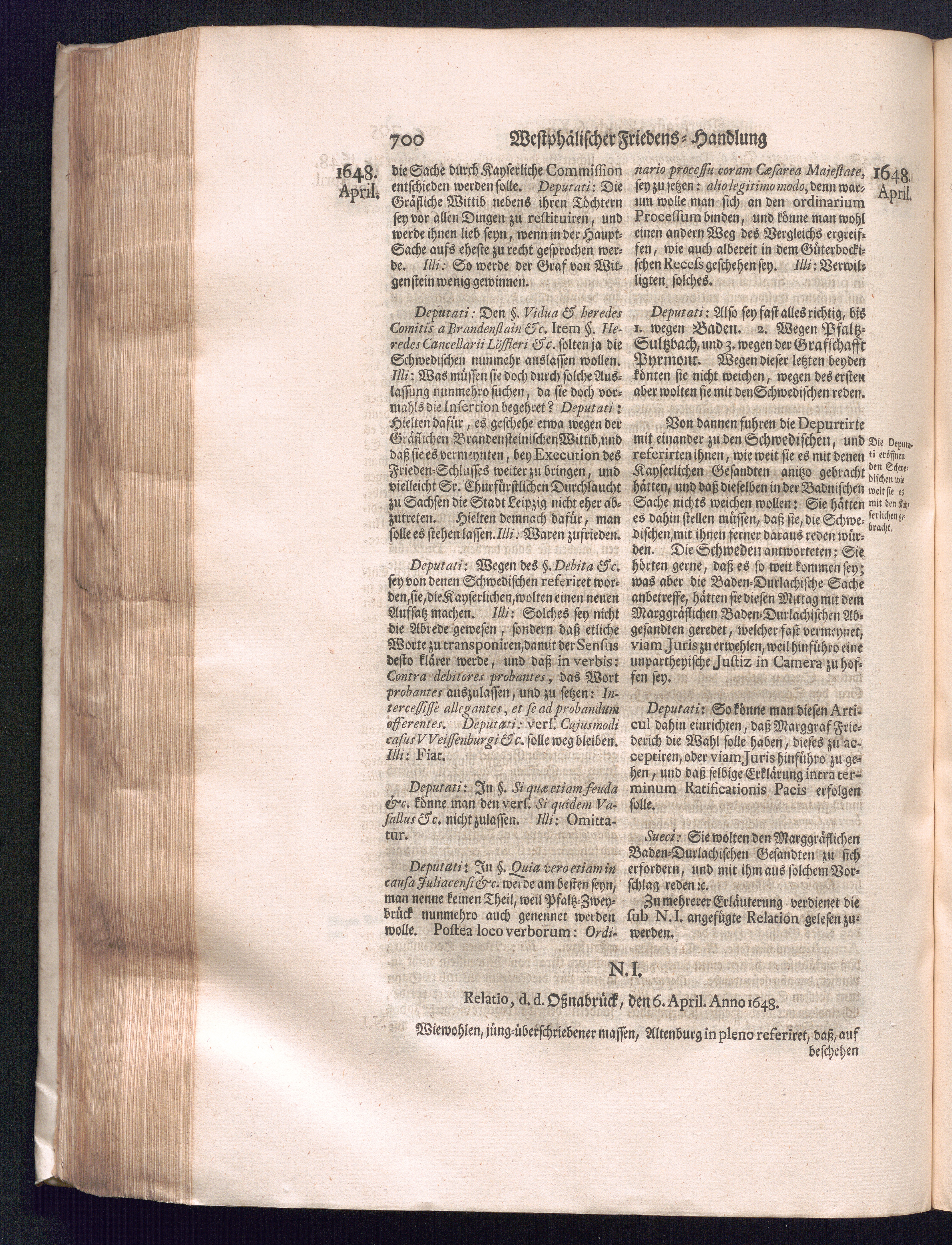 Fünffter Theil (1735) Worinnen enthalten, was vom Schluß des Jahrs 1647. biß in den Monath Junium des Jahrs 1648. zwischen Jhro Römisch-Kayserlichen Majestät, dann den Beyden Cronen Franckreich und Schweden, ingleichen des Heiligen Römischen Reichs Chur-Fürsten, Fürsten und Ständen, zu Oßnabrück und Münster gehandelt worden