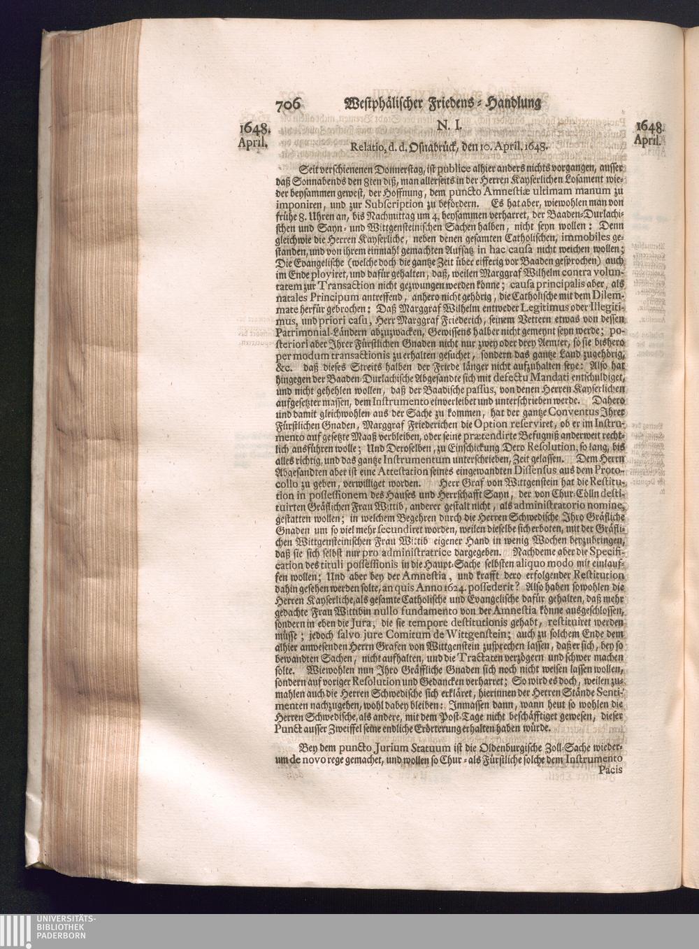 Fünffter Theil (1735) Worinnen enthalten, was vom Schluß des Jahrs 1647. biß in den Monath Junium des Jahrs 1648. zwischen Jhro Römisch-Kayserlichen Majestät, dann den Beyden Cronen Franckreich und Schweden, ingleichen des Heiligen Römischen Reichs Chur-Fürsten, Fürsten und Ständen, zu Oßnabrück und Münster gehandelt worden