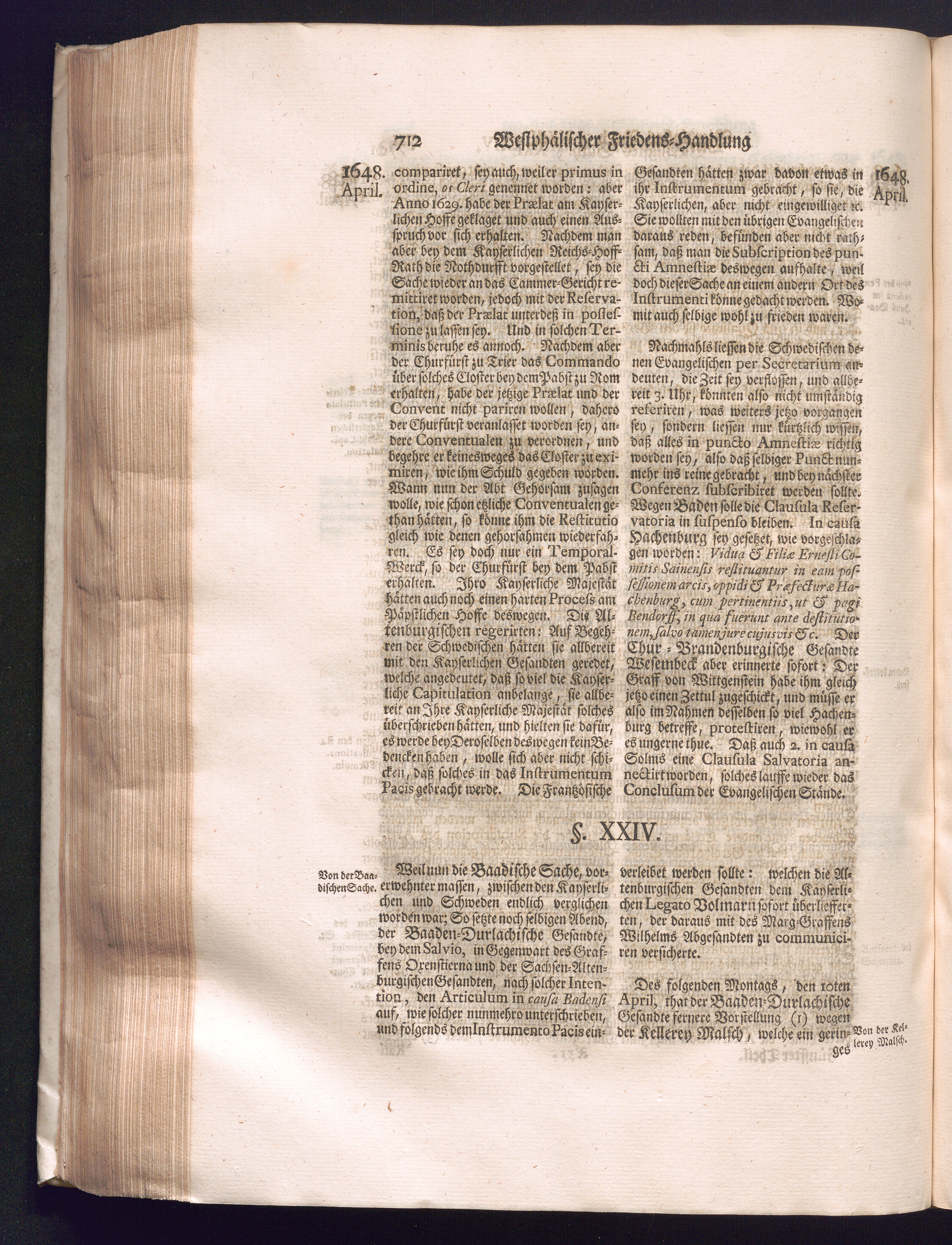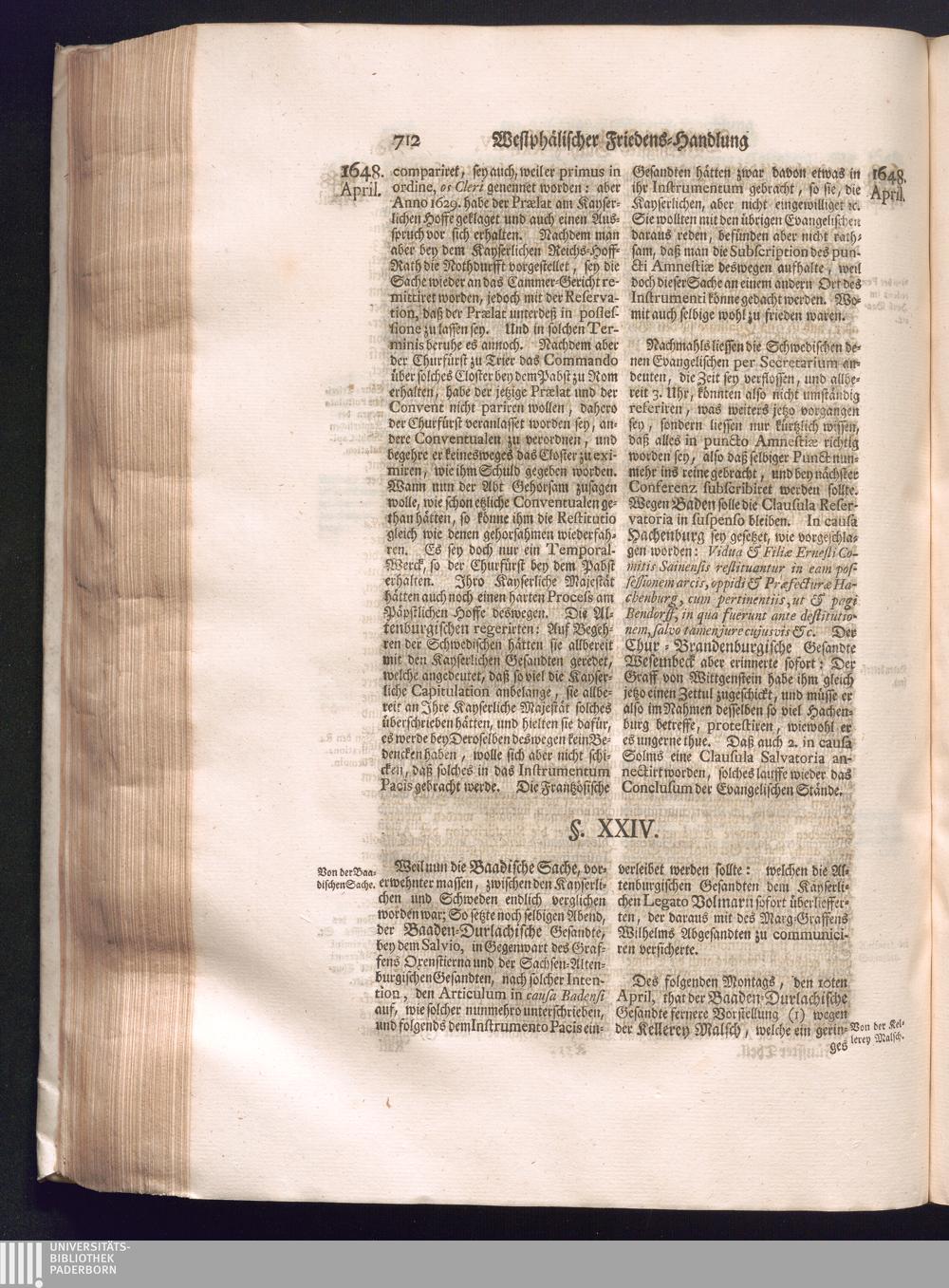 Fünffter Theil (1735) Worinnen enthalten, was vom Schluß des Jahrs 1647. biß in den Monath Junium des Jahrs 1648. zwischen Jhro Römisch-Kayserlichen Majestät, dann den Beyden Cronen Franckreich und Schweden, ingleichen des Heiligen Römischen Reichs Chur-Fürsten, Fürsten und Ständen, zu Oßnabrück und Münster gehandelt worden