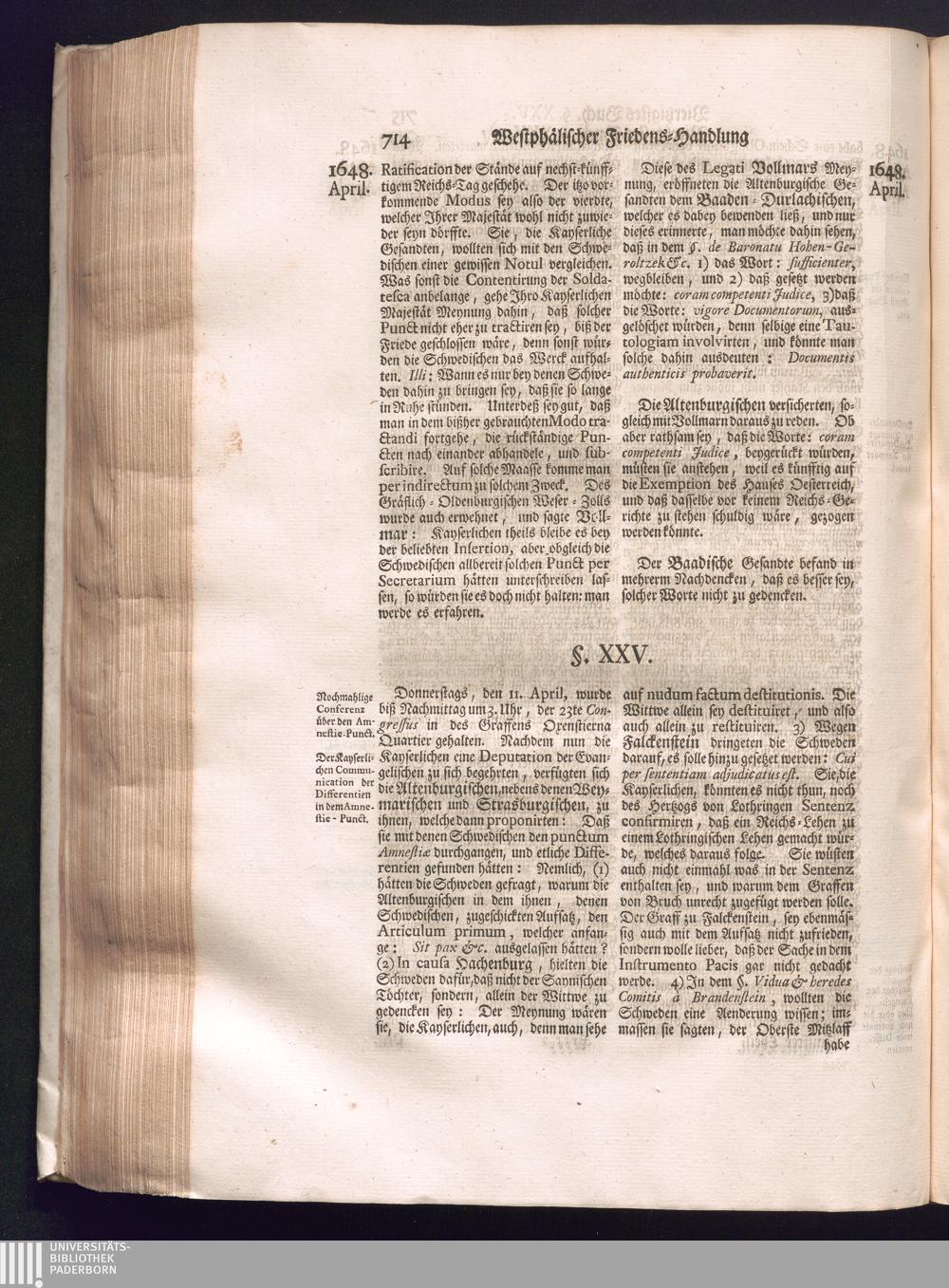 Fünffter Theil (1735) Worinnen enthalten, was vom Schluß des Jahrs 1647. biß in den Monath Junium des Jahrs 1648. zwischen Jhro Römisch-Kayserlichen Majestät, dann den Beyden Cronen Franckreich und Schweden, ingleichen des Heiligen Römischen Reichs Chur-Fürsten, Fürsten und Ständen, zu Oßnabrück und Münster gehandelt worden