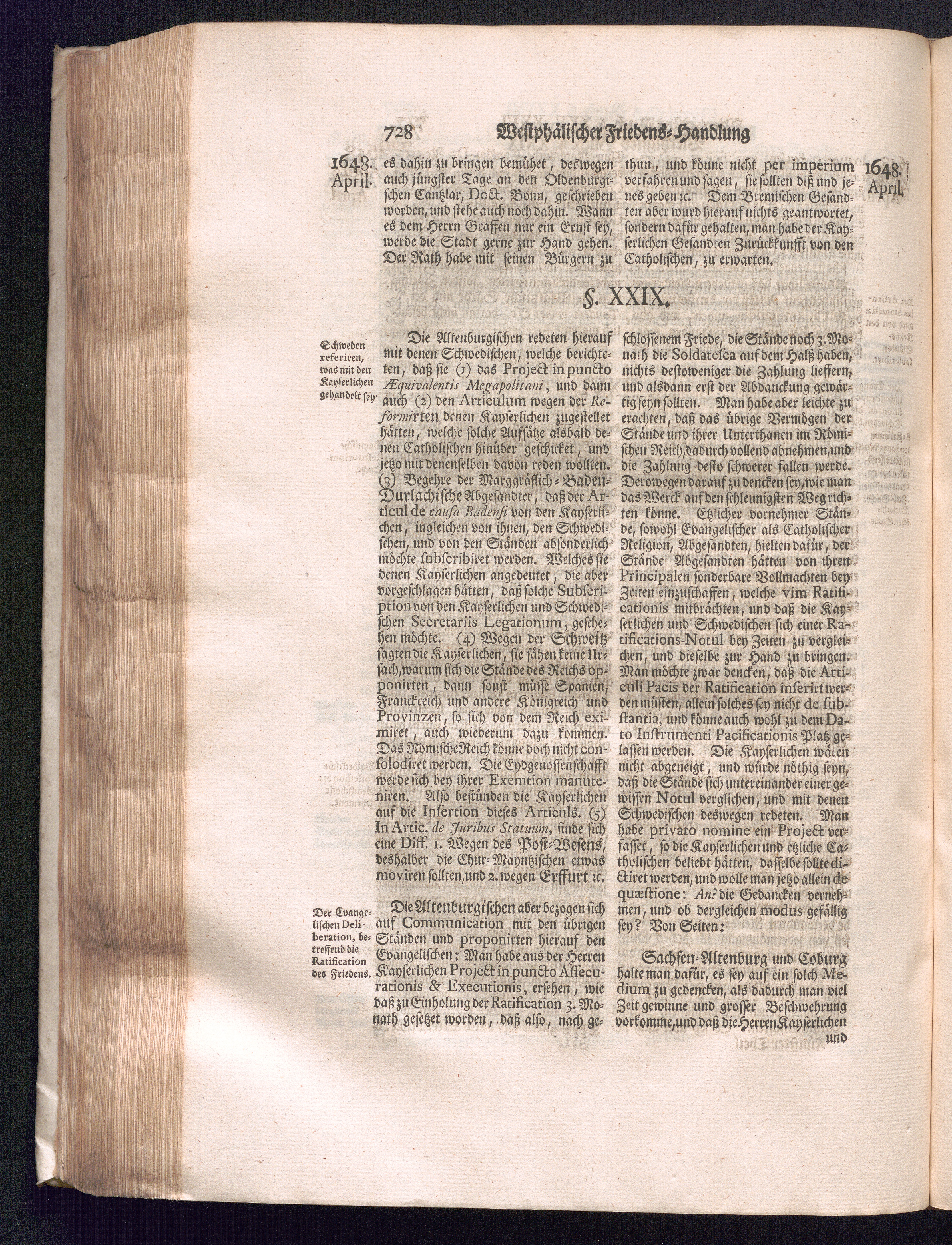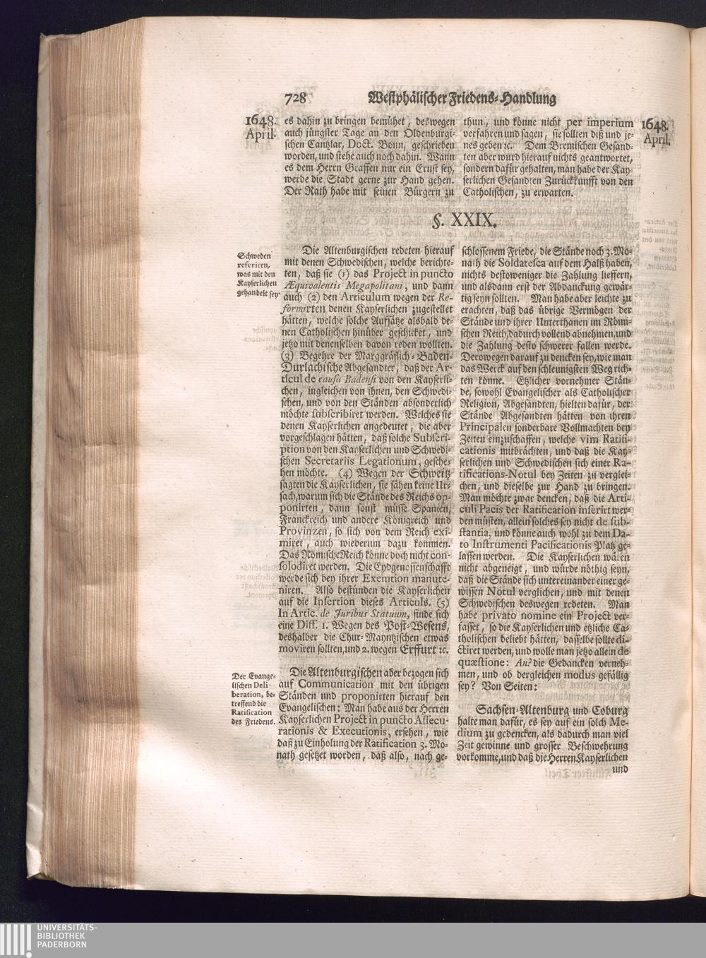 Fünffter Theil (1735) Worinnen enthalten, was vom Schluß des Jahrs 1647. biß in den Monath Junium des Jahrs 1648. zwischen Jhro Römisch-Kayserlichen Majestät, dann den Beyden Cronen Franckreich und Schweden, ingleichen des Heiligen Römischen Reichs Chur-Fürsten, Fürsten und Ständen, zu Oßnabrück und Münster gehandelt worden