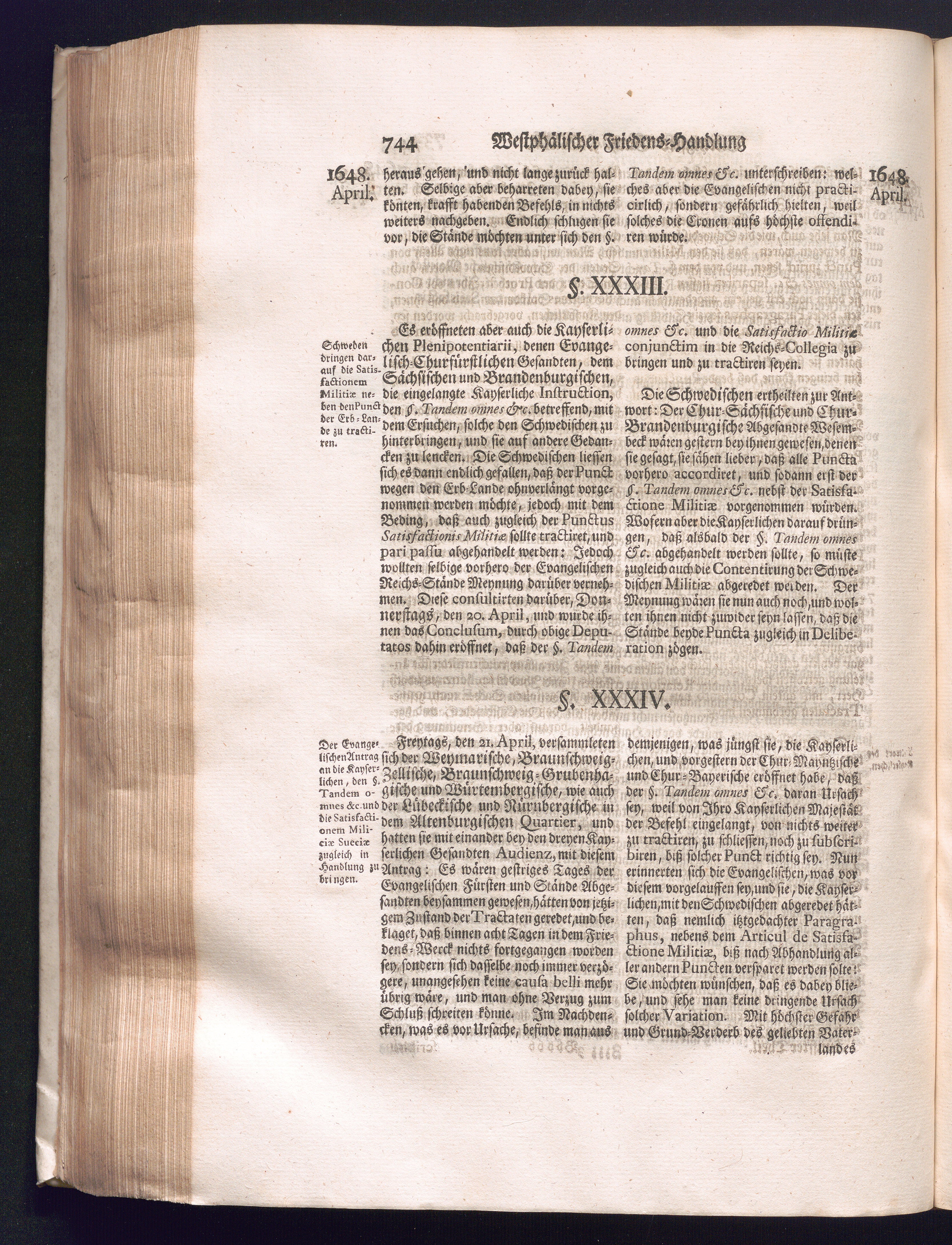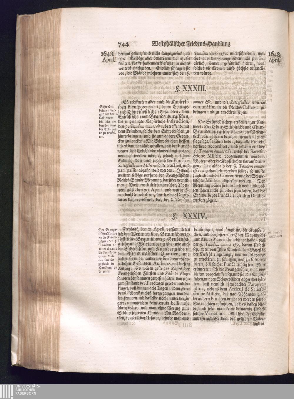 Fünffter Theil (1735) Worinnen enthalten, was vom Schluß des Jahrs 1647. biß in den Monath Junium des Jahrs 1648. zwischen Jhro Römisch-Kayserlichen Majestät, dann den Beyden Cronen Franckreich und Schweden, ingleichen des Heiligen Römischen Reichs Chur-Fürsten, Fürsten und Ständen, zu Oßnabrück und Münster gehandelt worden