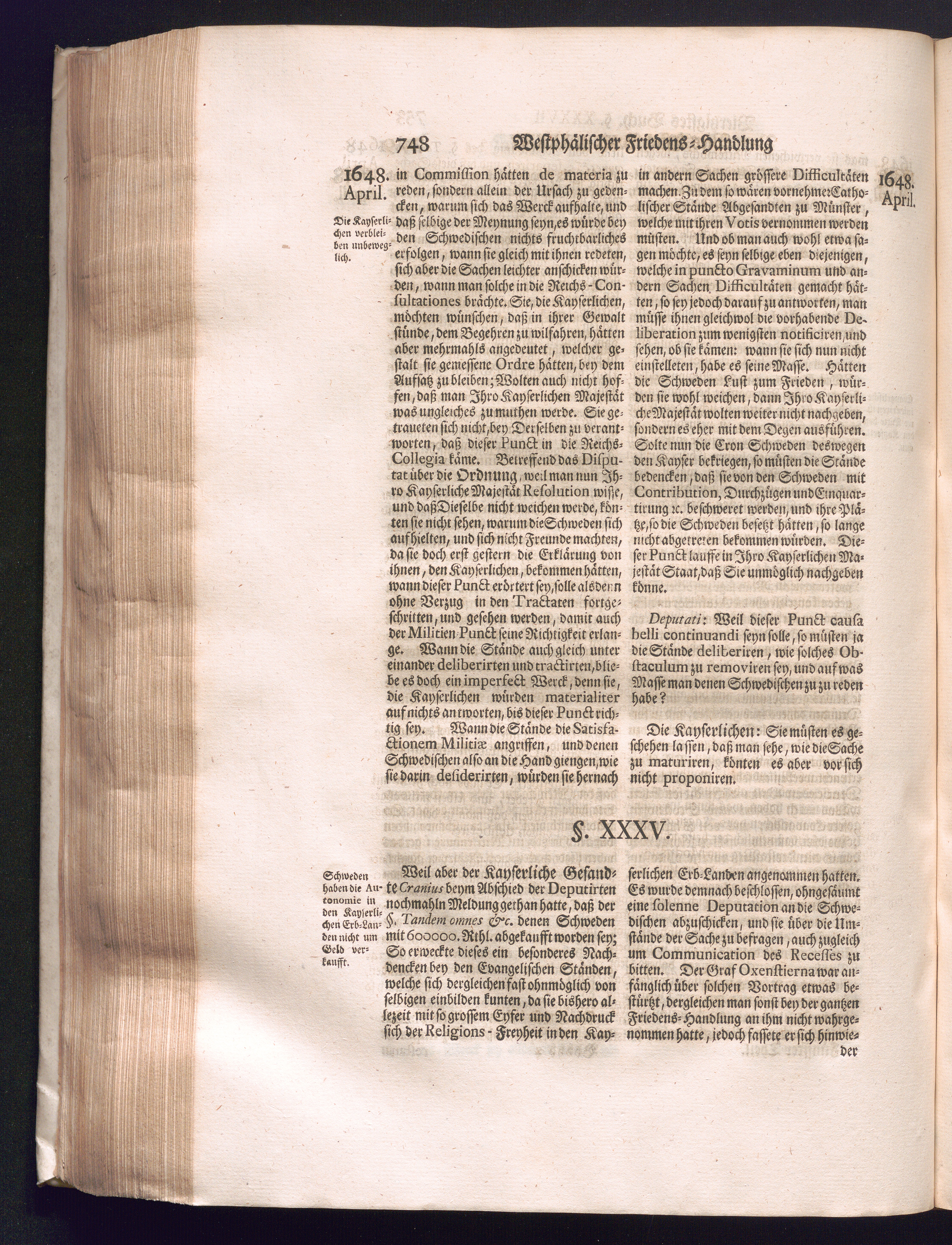 Fünffter Theil (1735) Worinnen enthalten, was vom Schluß des Jahrs 1647. biß in den Monath Junium des Jahrs 1648. zwischen Jhro Römisch-Kayserlichen Majestät, dann den Beyden Cronen Franckreich und Schweden, ingleichen des Heiligen Römischen Reichs Chur-Fürsten, Fürsten und Ständen, zu Oßnabrück und Münster gehandelt worden