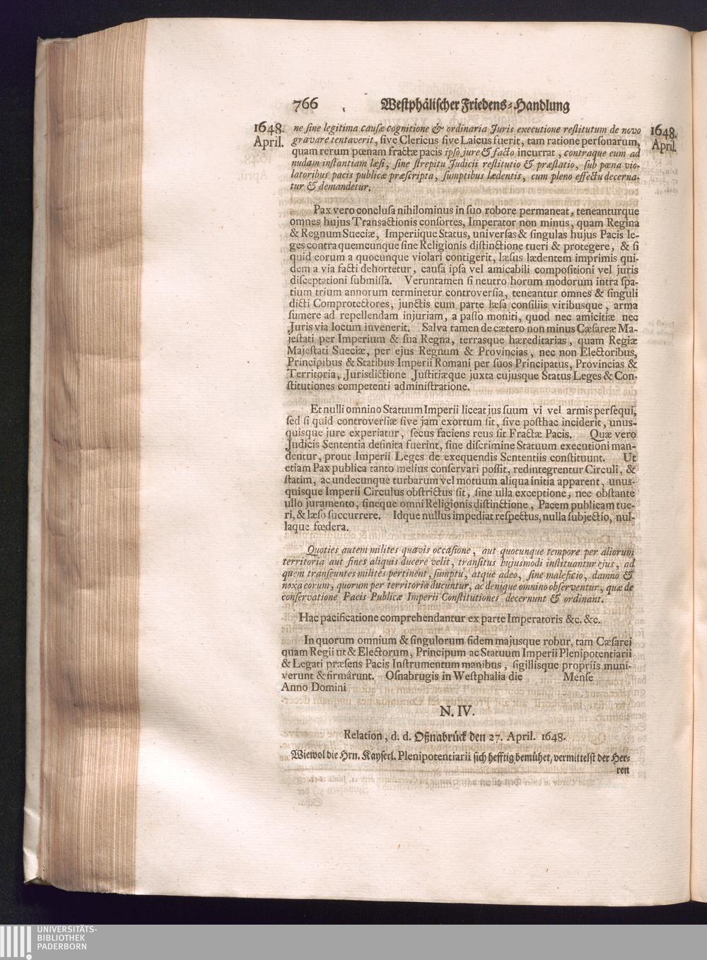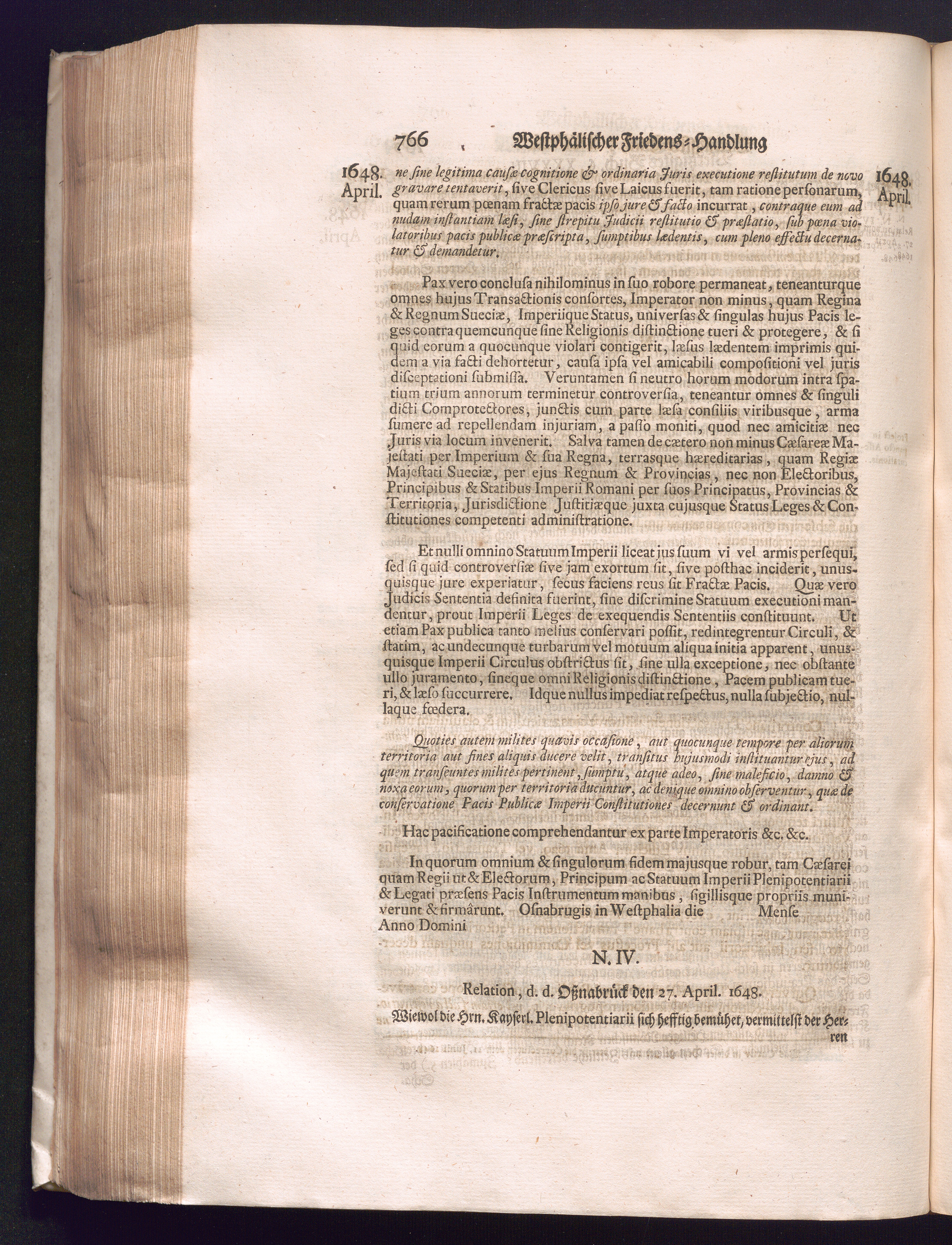 Fünffter Theil (1735) Worinnen enthalten, was vom Schluß des Jahrs 1647. biß in den Monath Junium des Jahrs 1648. zwischen Jhro Römisch-Kayserlichen Majestät, dann den Beyden Cronen Franckreich und Schweden, ingleichen des Heiligen Römischen Reichs Chur-Fürsten, Fürsten und Ständen, zu Oßnabrück und Münster gehandelt worden