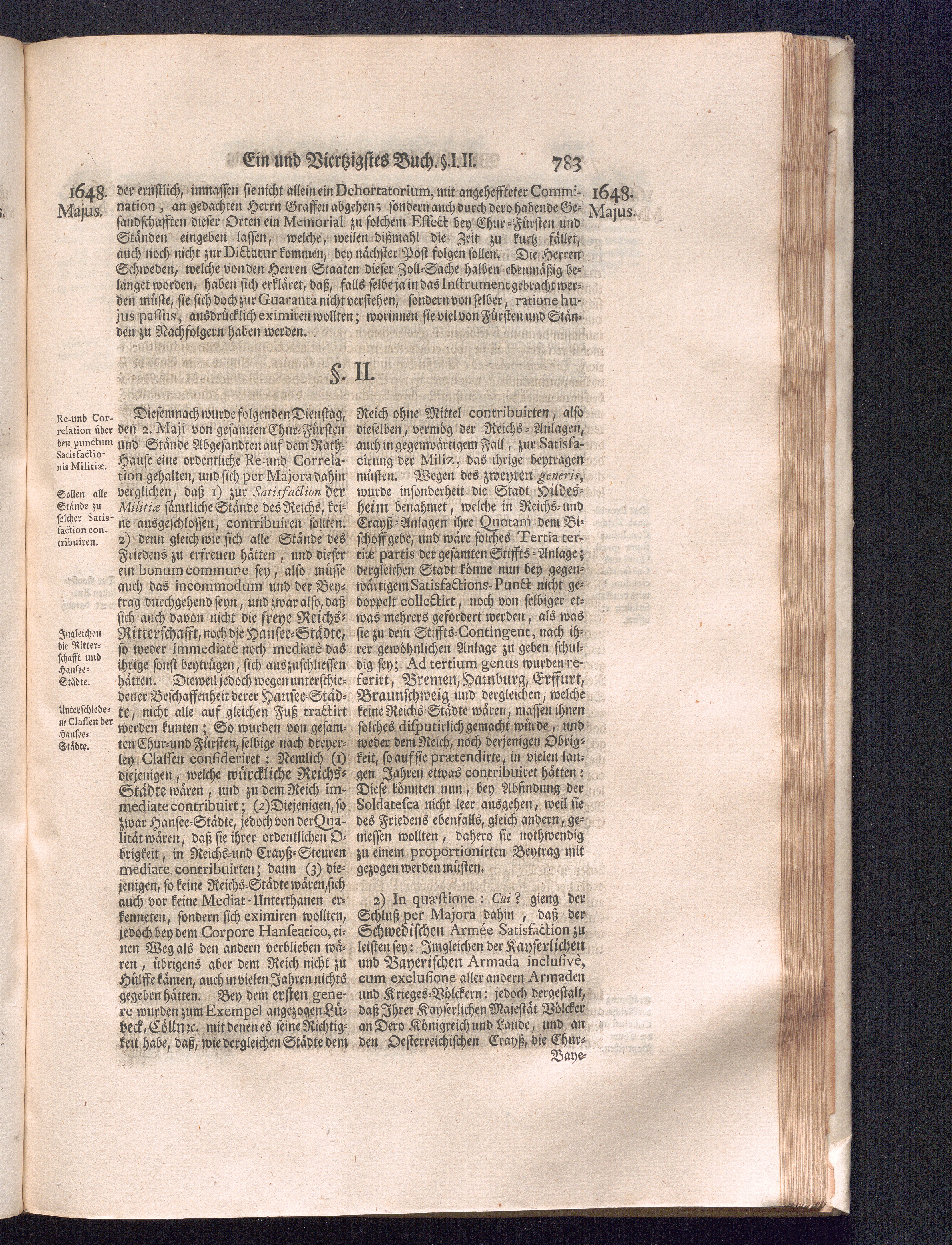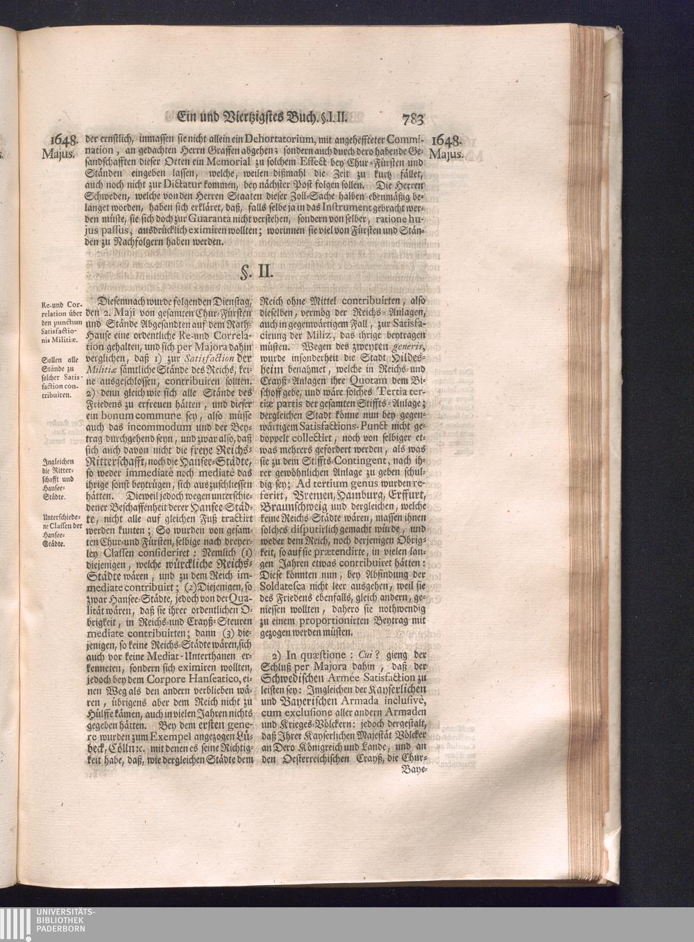 Fünffter Theil (1735) Worinnen enthalten, was vom Schluß des Jahrs 1647. biß in den Monath Junium des Jahrs 1648. zwischen Jhro Römisch-Kayserlichen Majestät, dann den Beyden Cronen Franckreich und Schweden, ingleichen des Heiligen Römischen Reichs Chur-Fürsten, Fürsten und Ständen, zu Oßnabrück und Münster gehandelt worden