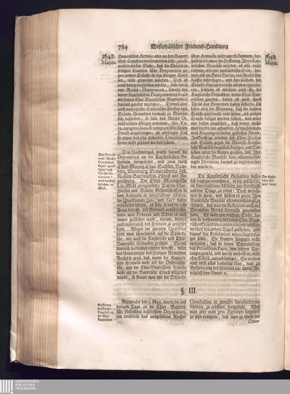 Fünffter Theil (1735) Worinnen enthalten, was vom Schluß des Jahrs 1647. biß in den Monath Junium des Jahrs 1648. zwischen Jhro Römisch-Kayserlichen Majestät, dann den Beyden Cronen Franckreich und Schweden, ingleichen des Heiligen Römischen Reichs Chur-Fürsten, Fürsten und Ständen, zu Oßnabrück und Münster gehandelt worden