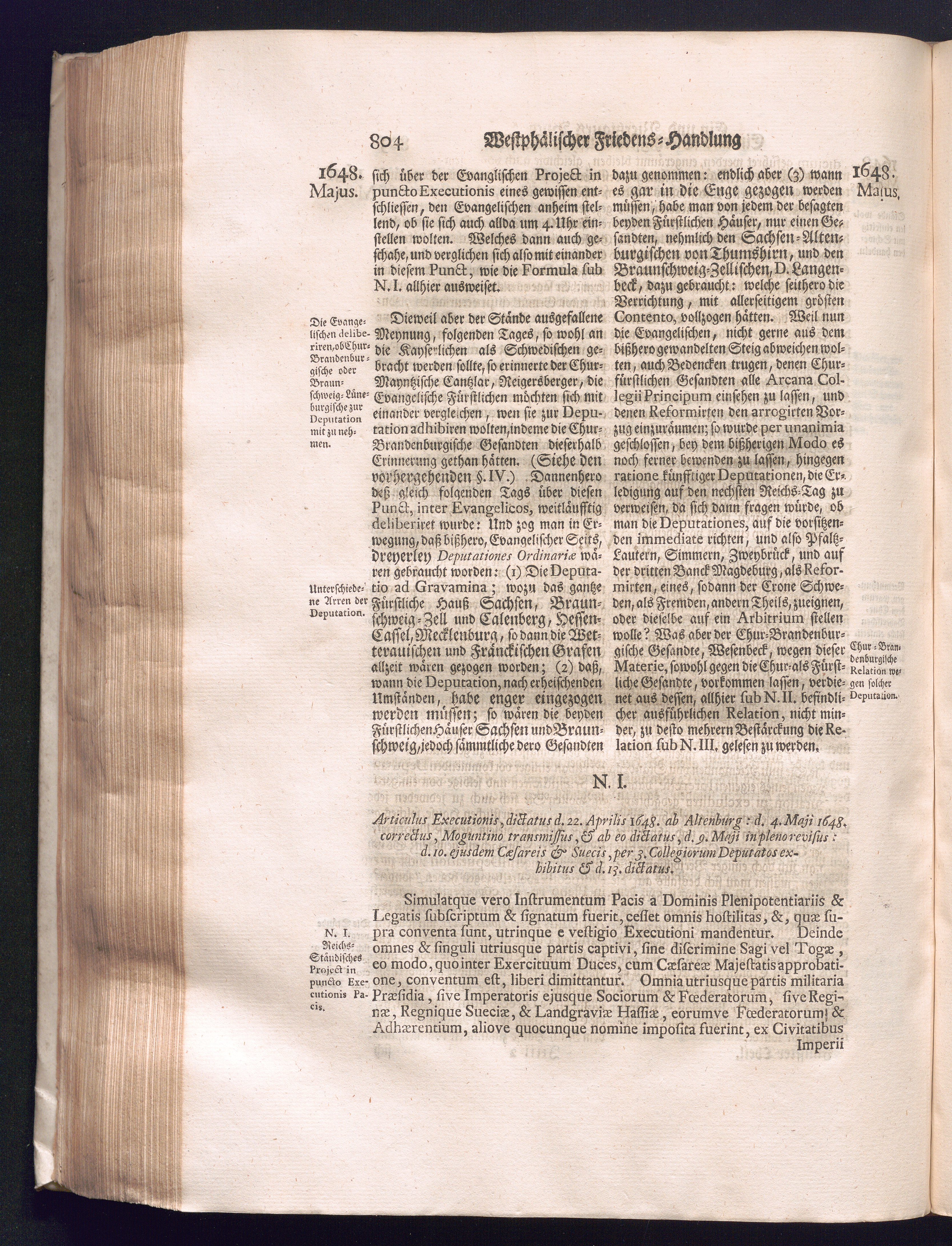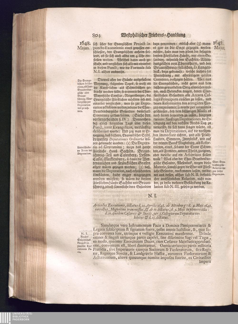 Fünffter Theil (1735) Worinnen enthalten, was vom Schluß des Jahrs 1647. biß in den Monath Junium des Jahrs 1648. zwischen Jhro Römisch-Kayserlichen Majestät, dann den Beyden Cronen Franckreich und Schweden, ingleichen des Heiligen Römischen Reichs Chur-Fürsten, Fürsten und Ständen, zu Oßnabrück und Münster gehandelt worden