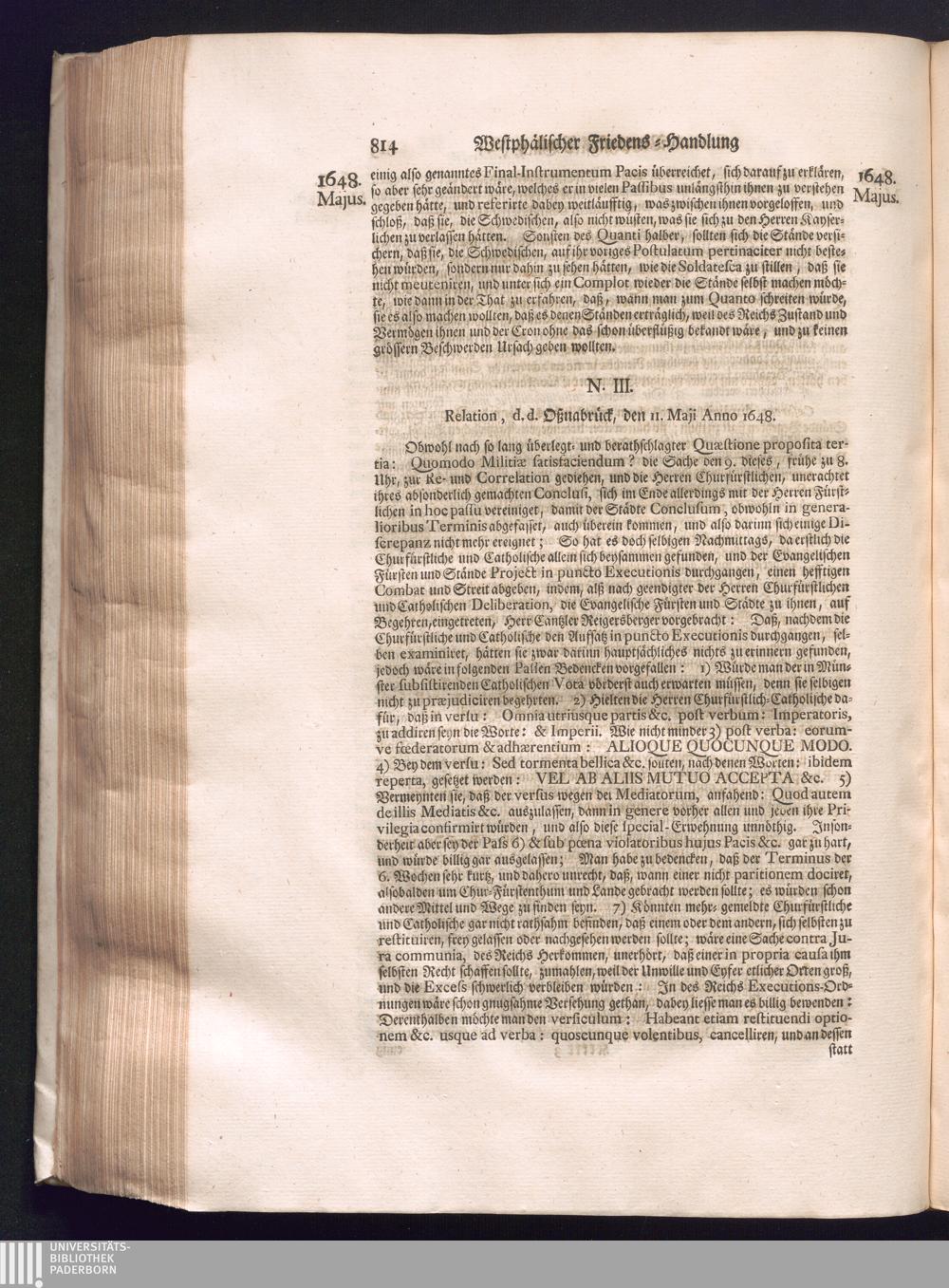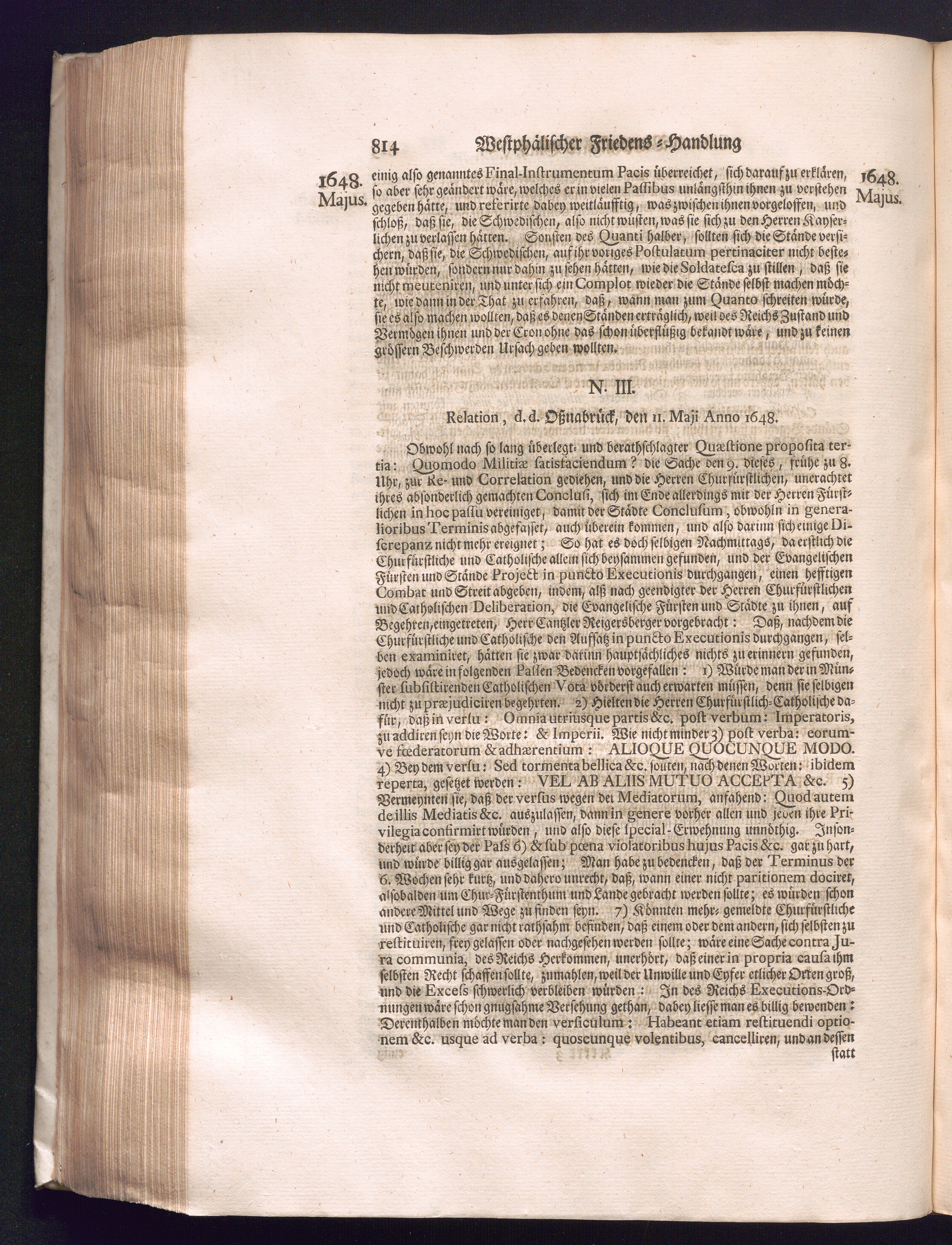 Fünffter Theil (1735) Worinnen enthalten, was vom Schluß des Jahrs 1647. biß in den Monath Junium des Jahrs 1648. zwischen Jhro Römisch-Kayserlichen Majestät, dann den Beyden Cronen Franckreich und Schweden, ingleichen des Heiligen Römischen Reichs Chur-Fürsten, Fürsten und Ständen, zu Oßnabrück und Münster gehandelt worden