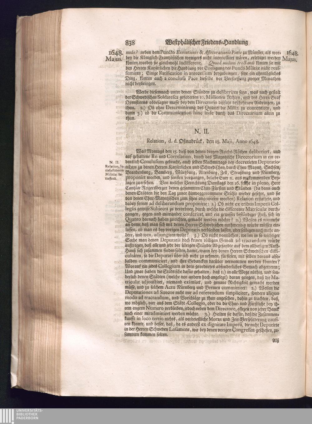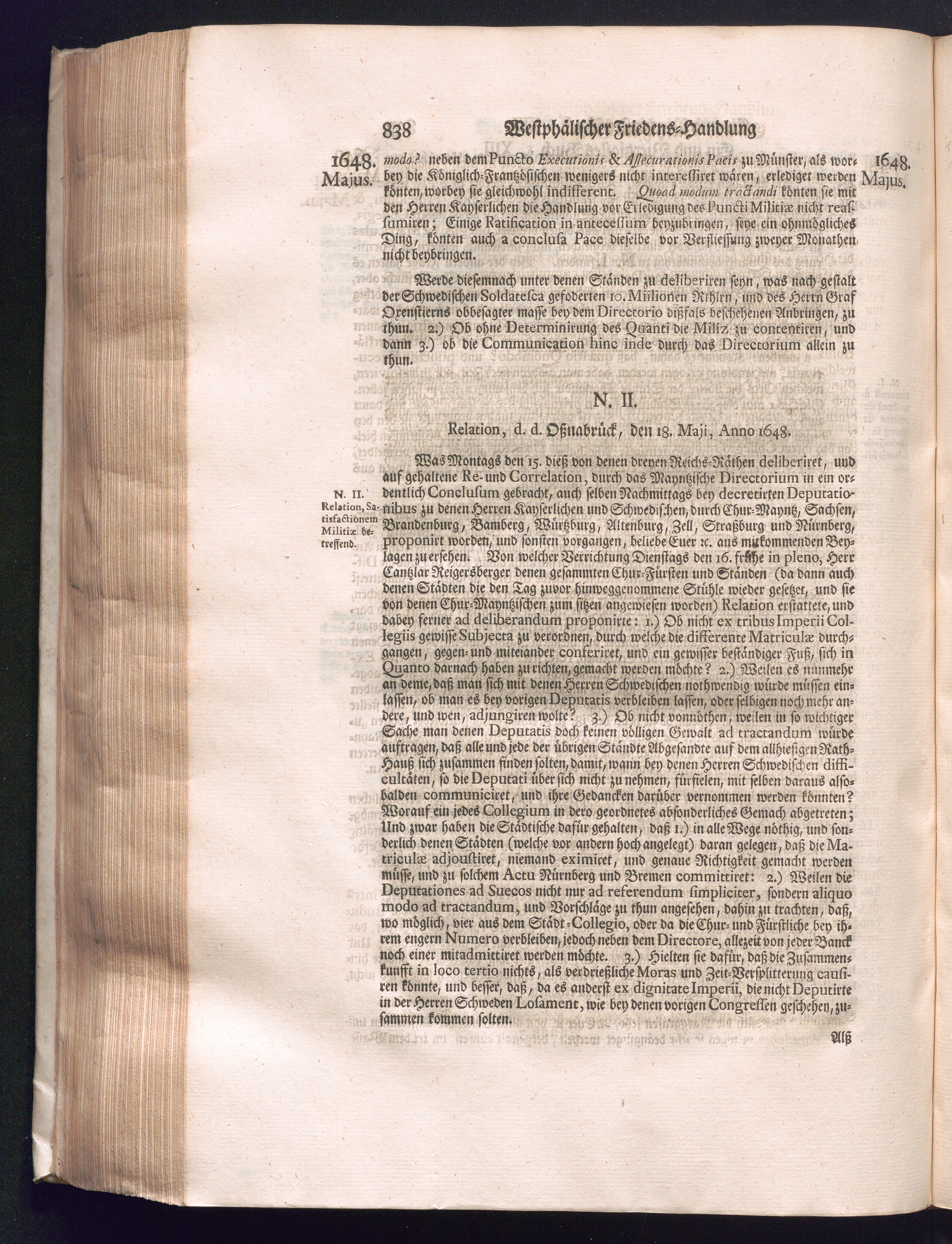 Fünffter Theil (1735) Worinnen enthalten, was vom Schluß des Jahrs 1647. biß in den Monath Junium des Jahrs 1648. zwischen Jhro Römisch-Kayserlichen Majestät, dann den Beyden Cronen Franckreich und Schweden, ingleichen des Heiligen Römischen Reichs Chur-Fürsten, Fürsten und Ständen, zu Oßnabrück und Münster gehandelt worden
