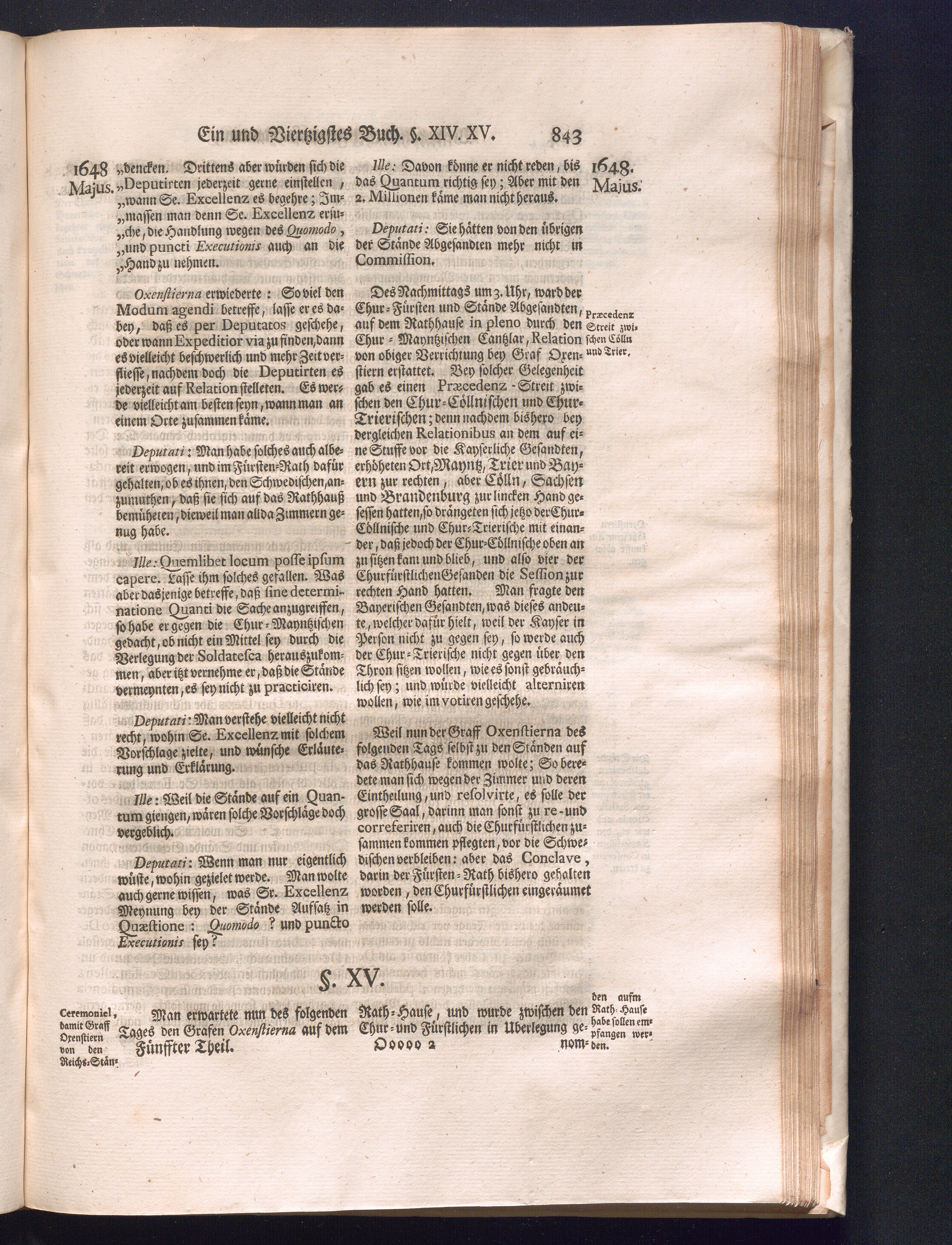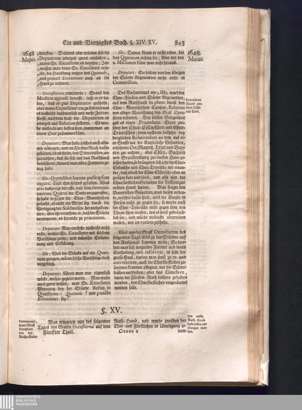 Fünffter Theil (1735) Worinnen enthalten, was vom Schluß des Jahrs 1647. biß in den Monath Junium des Jahrs 1648. zwischen Jhro Römisch-Kayserlichen Majestät, dann den Beyden Cronen Franckreich und Schweden, ingleichen des Heiligen Römischen Reichs Chur-Fürsten, Fürsten und Ständen, zu Oßnabrück und Münster gehandelt worden