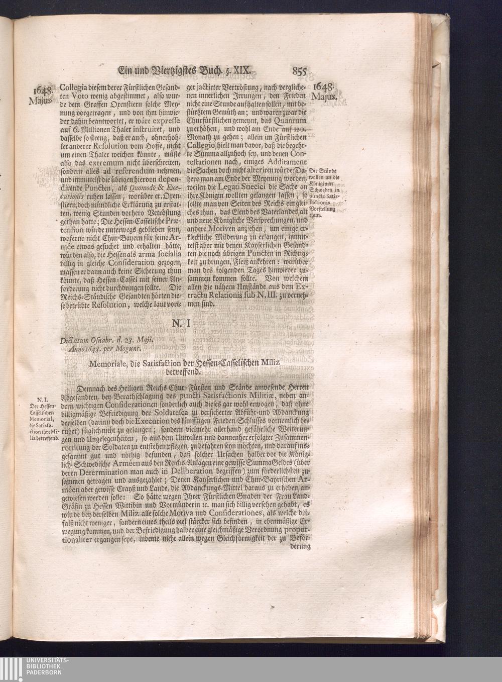 Fünffter Theil (1735) Worinnen enthalten, was vom Schluß des Jahrs 1647. biß in den Monath Junium des Jahrs 1648. zwischen Jhro Römisch-Kayserlichen Majestät, dann den Beyden Cronen Franckreich und Schweden, ingleichen des Heiligen Römischen Reichs Chur-Fürsten, Fürsten und Ständen, zu Oßnabrück und Münster gehandelt worden