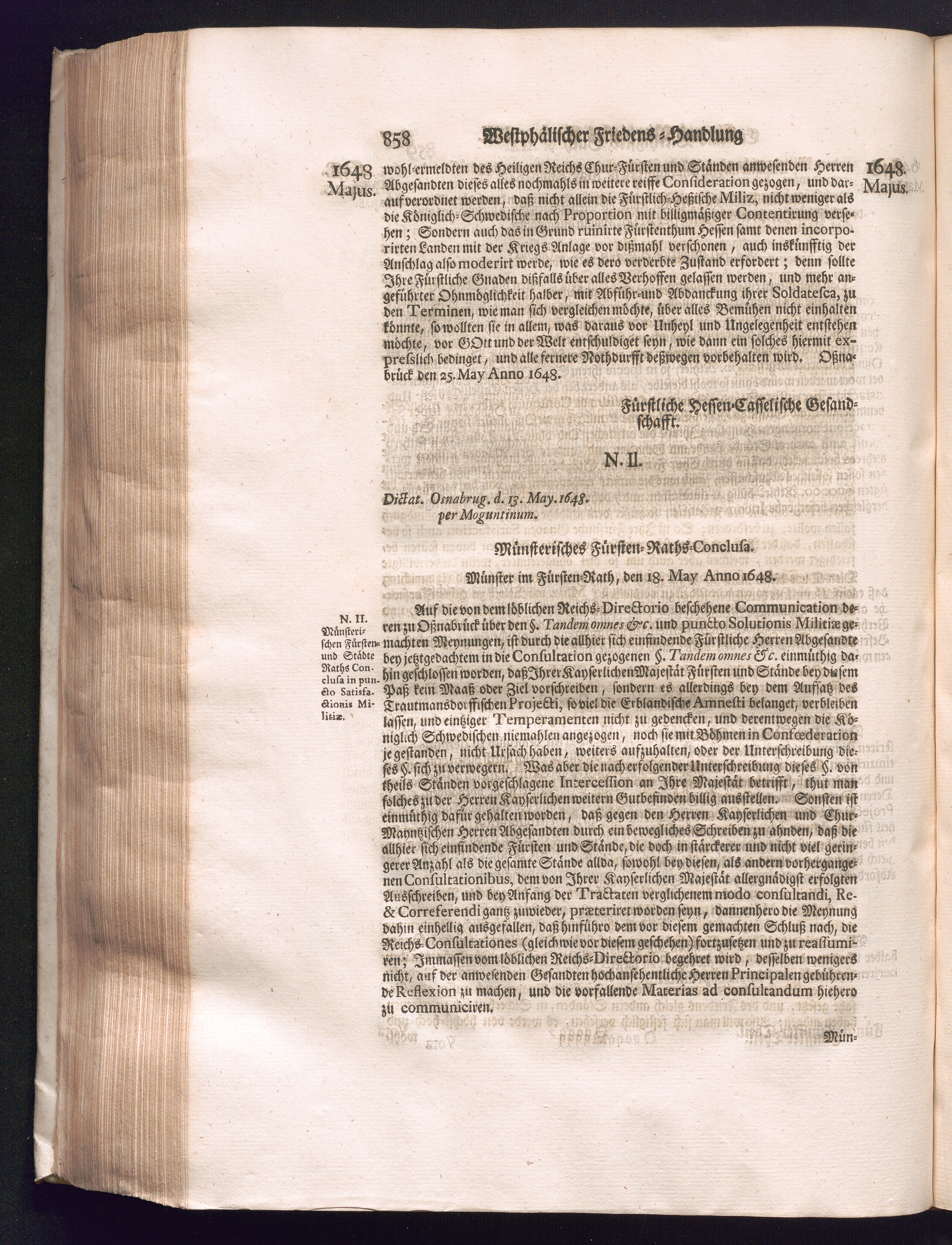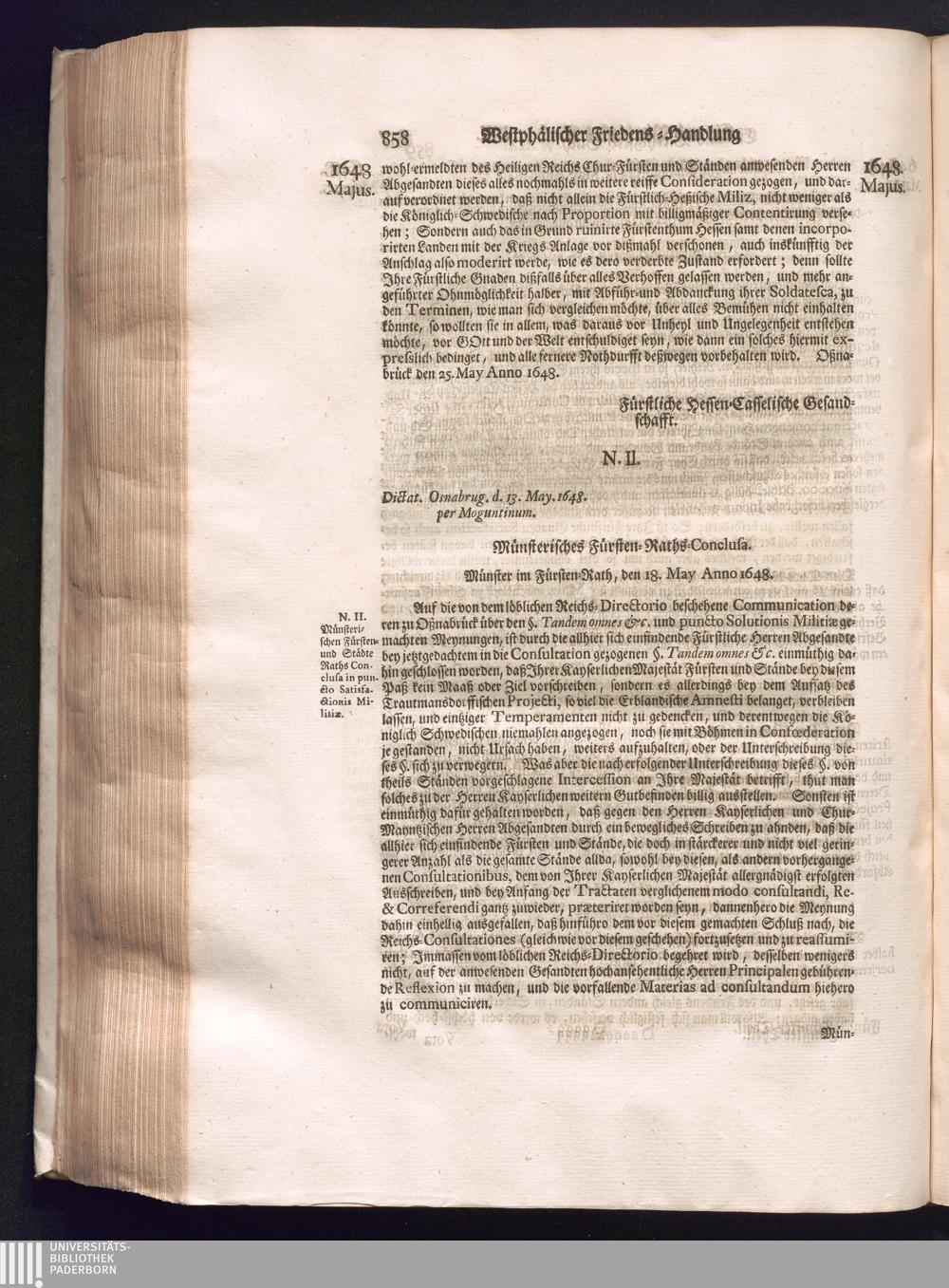 Fünffter Theil (1735) Worinnen enthalten, was vom Schluß des Jahrs 1647. biß in den Monath Junium des Jahrs 1648. zwischen Jhro Römisch-Kayserlichen Majestät, dann den Beyden Cronen Franckreich und Schweden, ingleichen des Heiligen Römischen Reichs Chur-Fürsten, Fürsten und Ständen, zu Oßnabrück und Münster gehandelt worden
