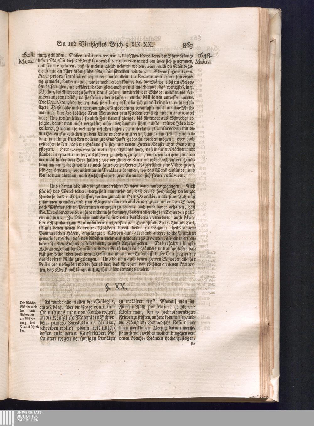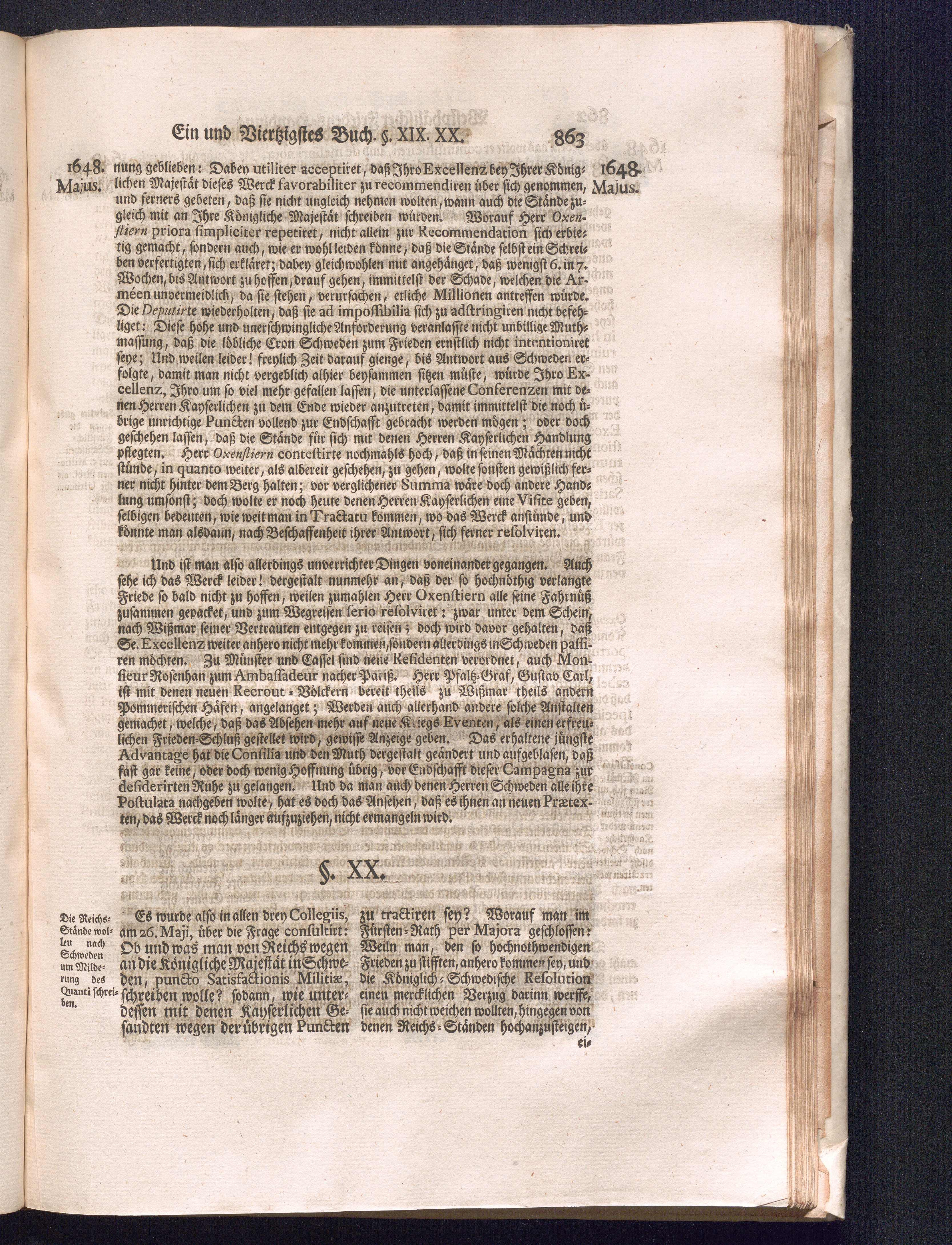 Fünffter Theil (1735) Worinnen enthalten, was vom Schluß des Jahrs 1647. biß in den Monath Junium des Jahrs 1648. zwischen Jhro Römisch-Kayserlichen Majestät, dann den Beyden Cronen Franckreich und Schweden, ingleichen des Heiligen Römischen Reichs Chur-Fürsten, Fürsten und Ständen, zu Oßnabrück und Münster gehandelt worden