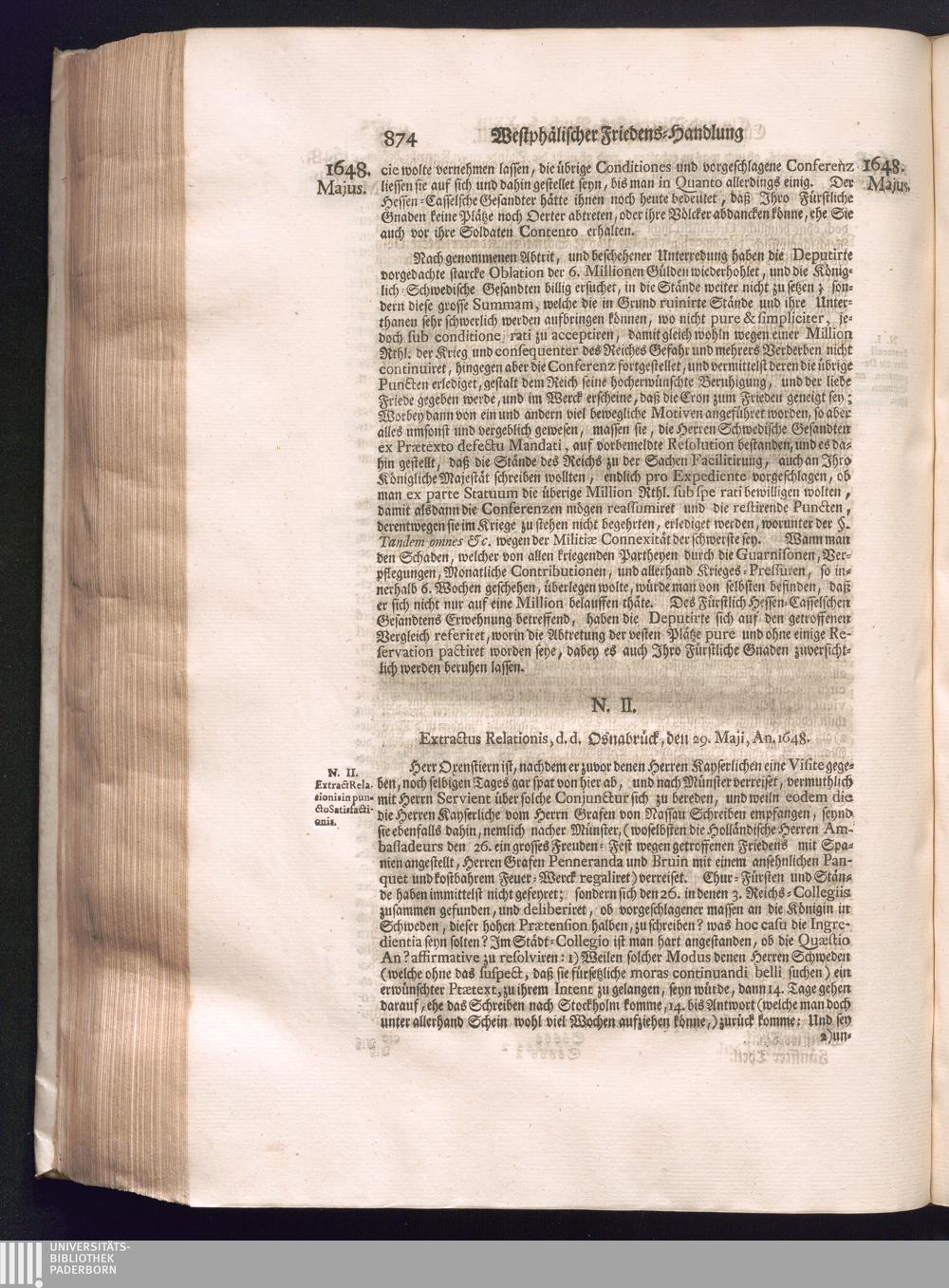 Fünffter Theil (1735) Worinnen enthalten, was vom Schluß des Jahrs 1647. biß in den Monath Junium des Jahrs 1648. zwischen Jhro Römisch-Kayserlichen Majestät, dann den Beyden Cronen Franckreich und Schweden, ingleichen des Heiligen Römischen Reichs Chur-Fürsten, Fürsten und Ständen, zu Oßnabrück und Münster gehandelt worden