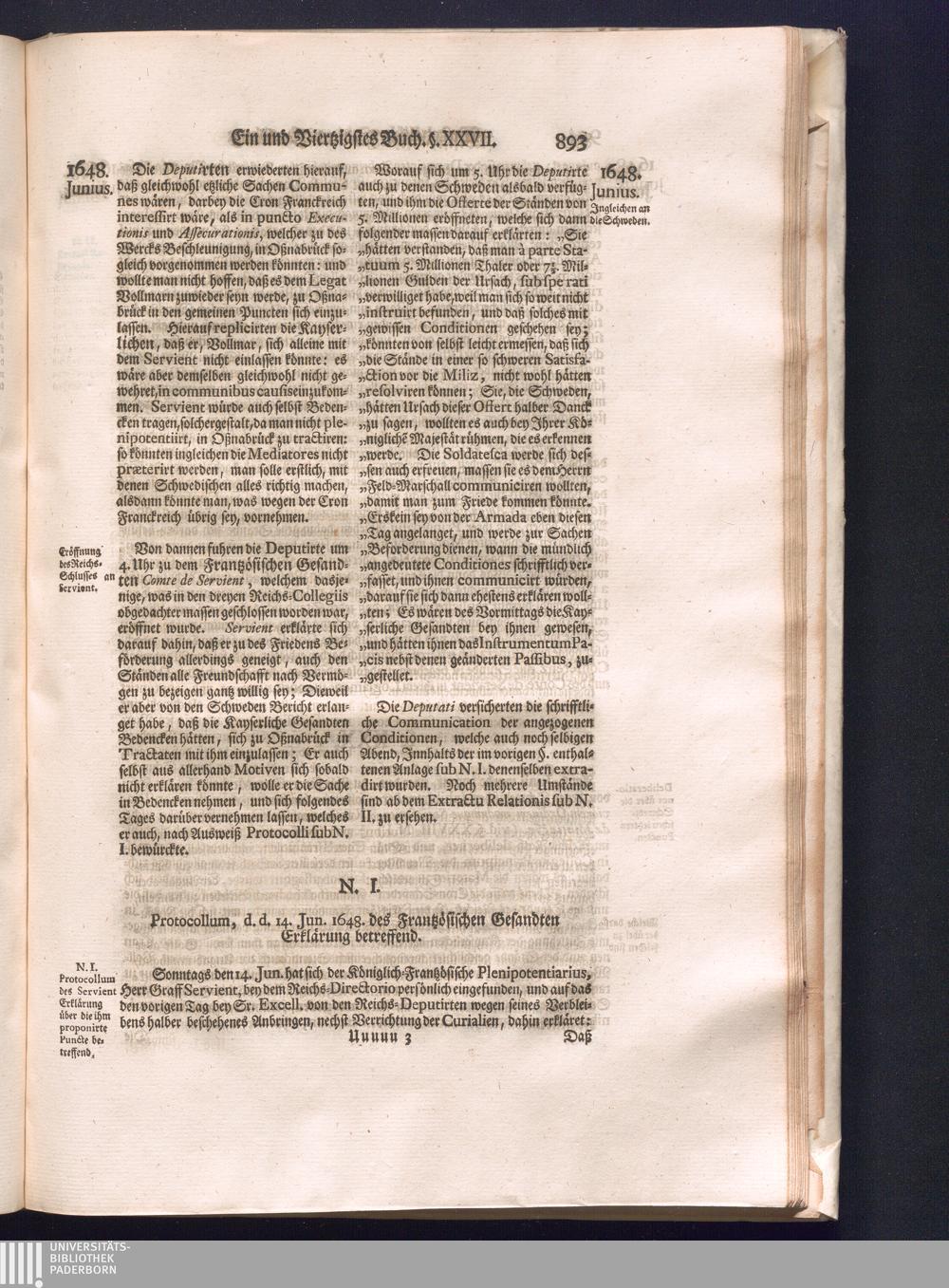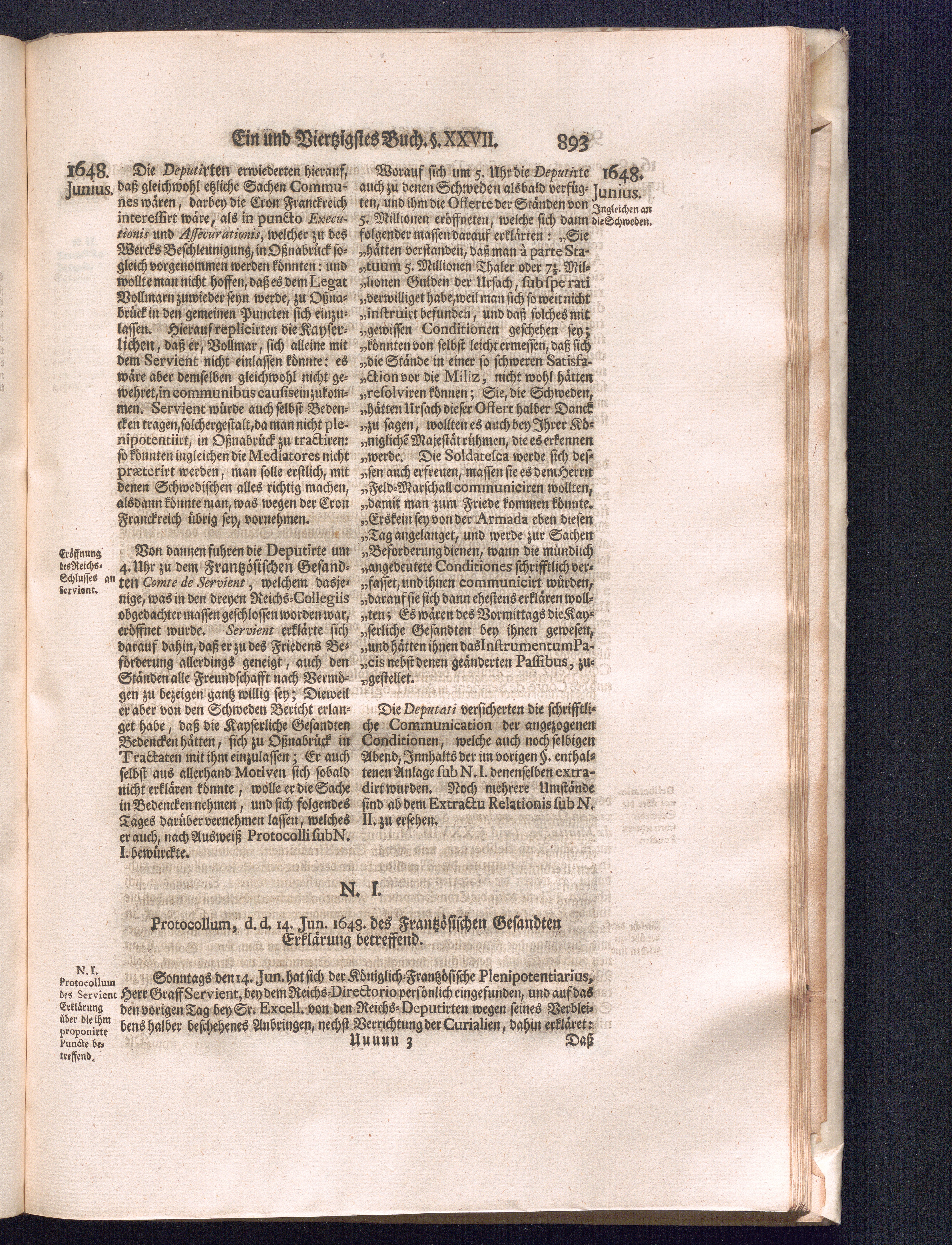 Fünffter Theil (1735) Worinnen enthalten, was vom Schluß des Jahrs 1647. biß in den Monath Junium des Jahrs 1648. zwischen Jhro Römisch-Kayserlichen Majestät, dann den Beyden Cronen Franckreich und Schweden, ingleichen des Heiligen Römischen Reichs Chur-Fürsten, Fürsten und Ständen, zu Oßnabrück und Münster gehandelt worden