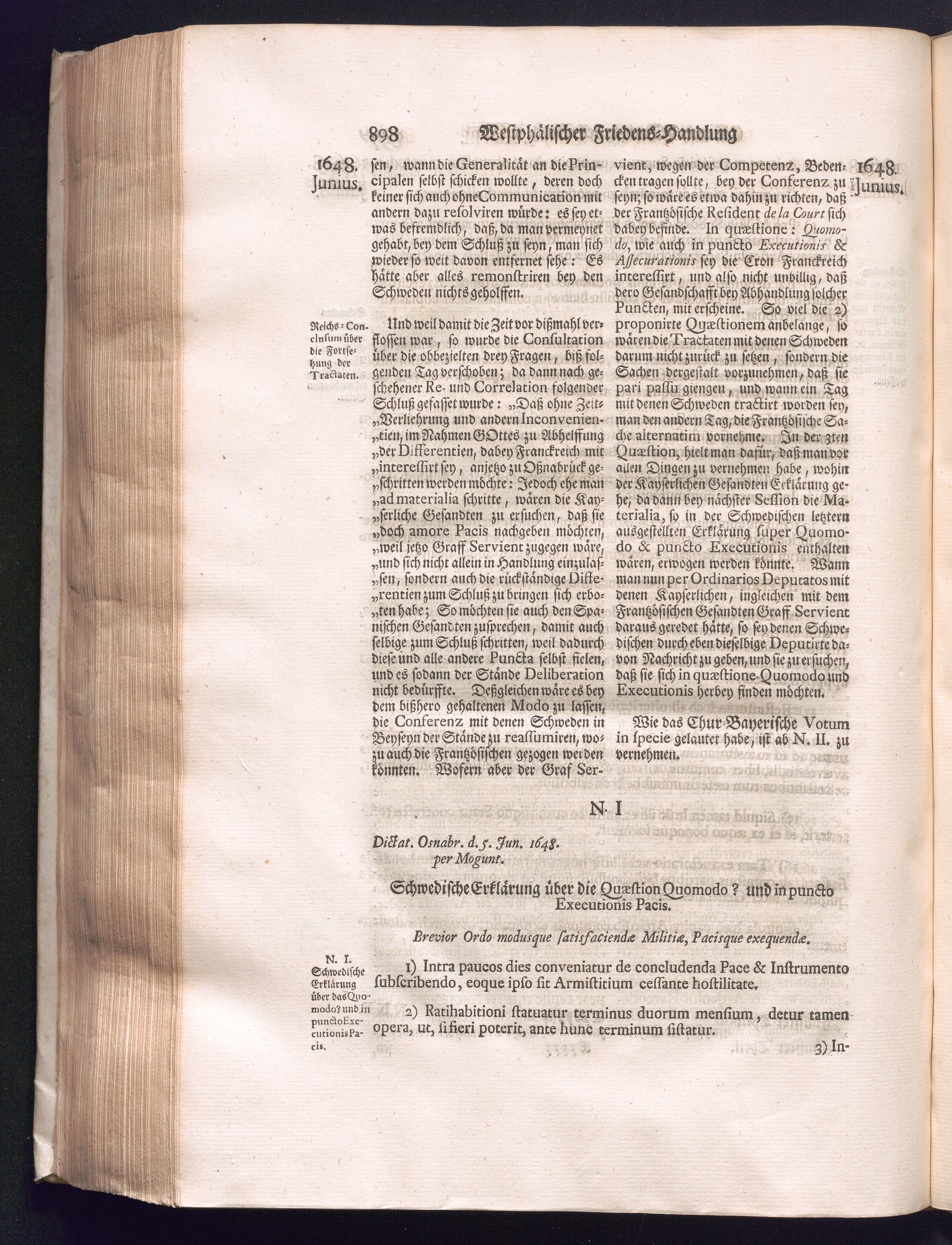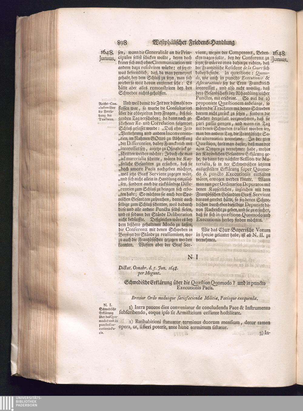 Fünffter Theil (1735) Worinnen enthalten, was vom Schluß des Jahrs 1647. biß in den Monath Junium des Jahrs 1648. zwischen Jhro Römisch-Kayserlichen Majestät, dann den Beyden Cronen Franckreich und Schweden, ingleichen des Heiligen Römischen Reichs Chur-Fürsten, Fürsten und Ständen, zu Oßnabrück und Münster gehandelt worden