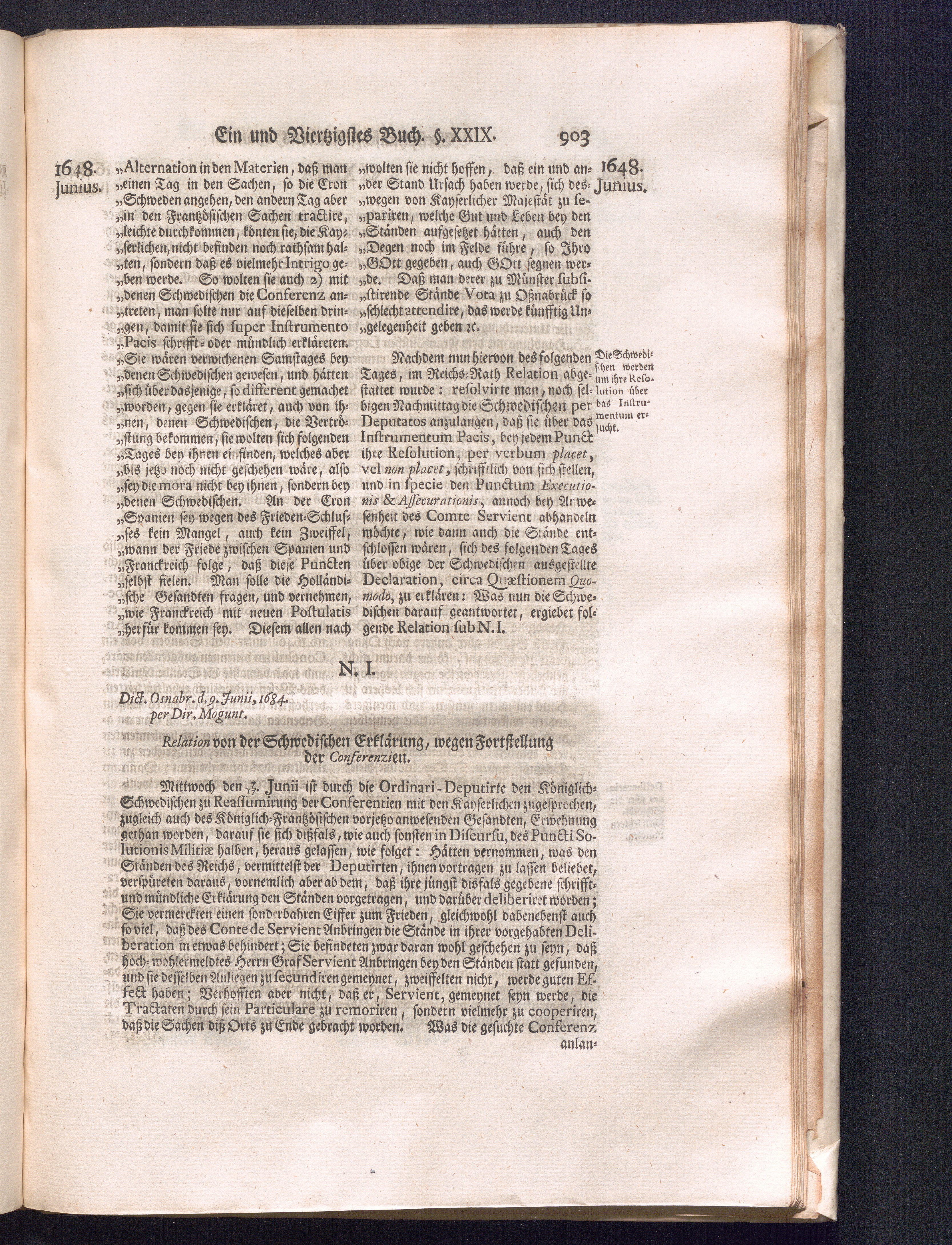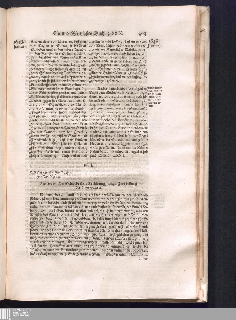 Fünffter Theil (1735) Worinnen enthalten, was vom Schluß des Jahrs 1647. biß in den Monath Junium des Jahrs 1648. zwischen Jhro Römisch-Kayserlichen Majestät, dann den Beyden Cronen Franckreich und Schweden, ingleichen des Heiligen Römischen Reichs Chur-Fürsten, Fürsten und Ständen, zu Oßnabrück und Münster gehandelt worden
