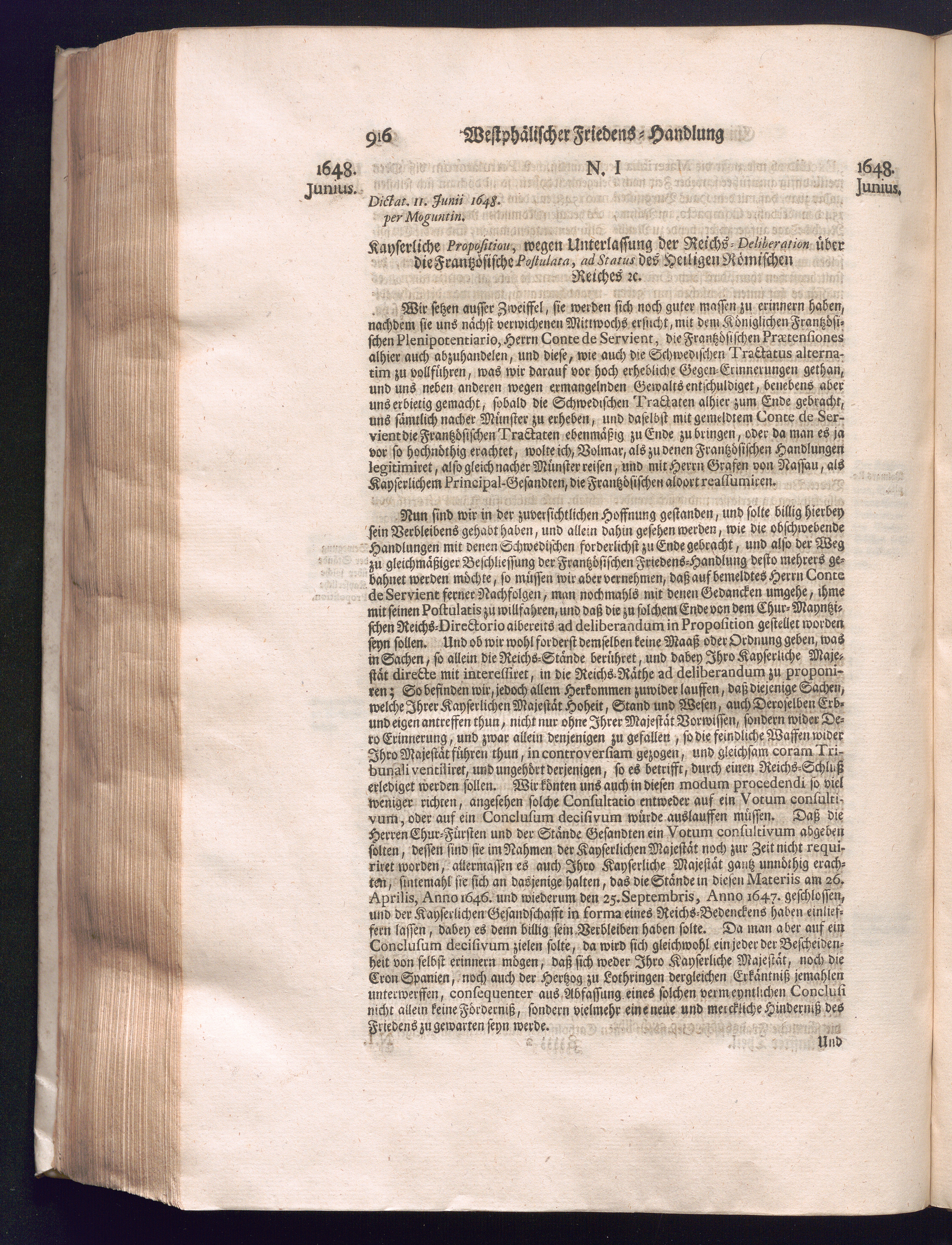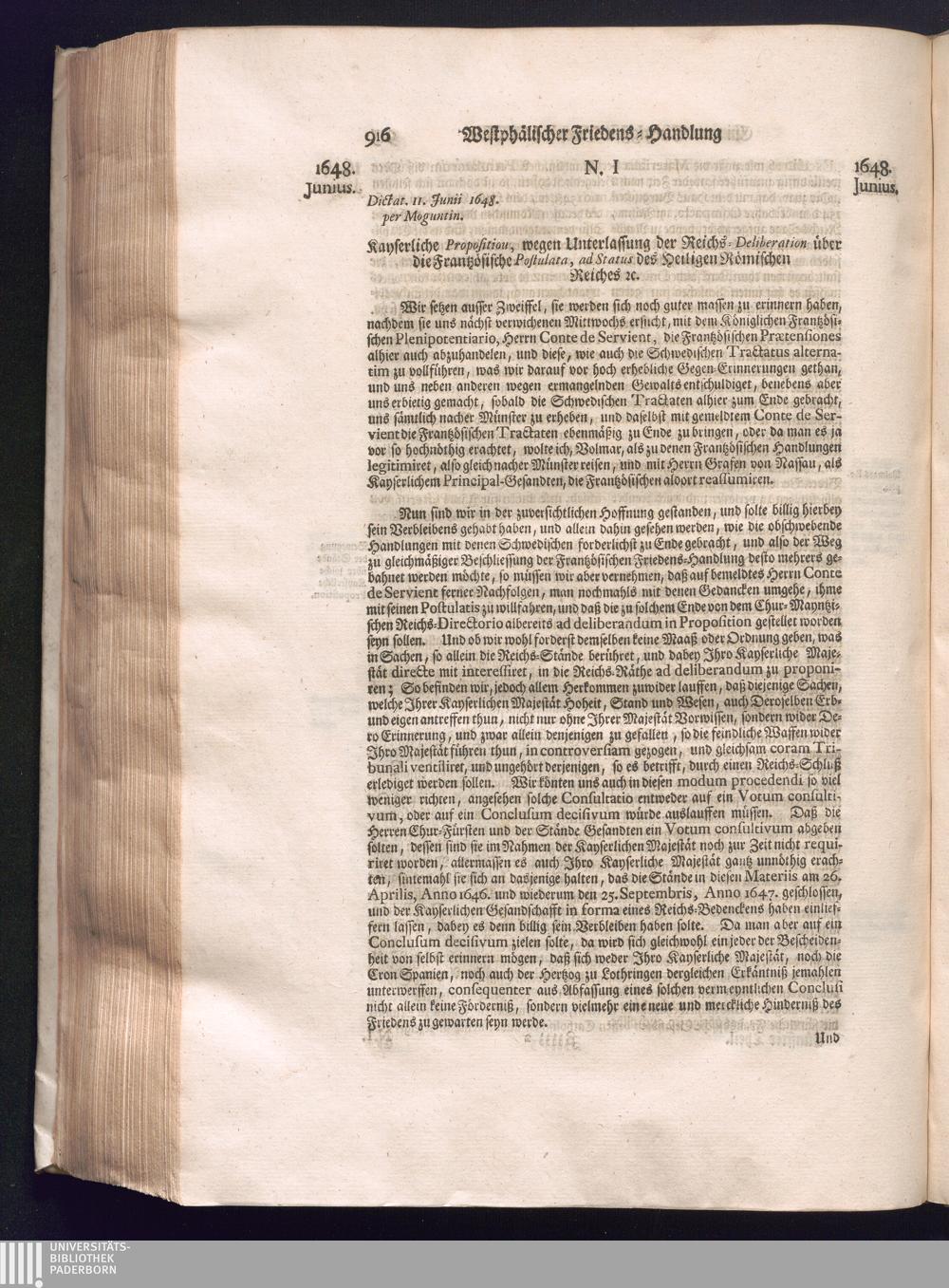 Fünffter Theil (1735) Worinnen enthalten, was vom Schluß des Jahrs 1647. biß in den Monath Junium des Jahrs 1648. zwischen Jhro Römisch-Kayserlichen Majestät, dann den Beyden Cronen Franckreich und Schweden, ingleichen des Heiligen Römischen Reichs Chur-Fürsten, Fürsten und Ständen, zu Oßnabrück und Münster gehandelt worden