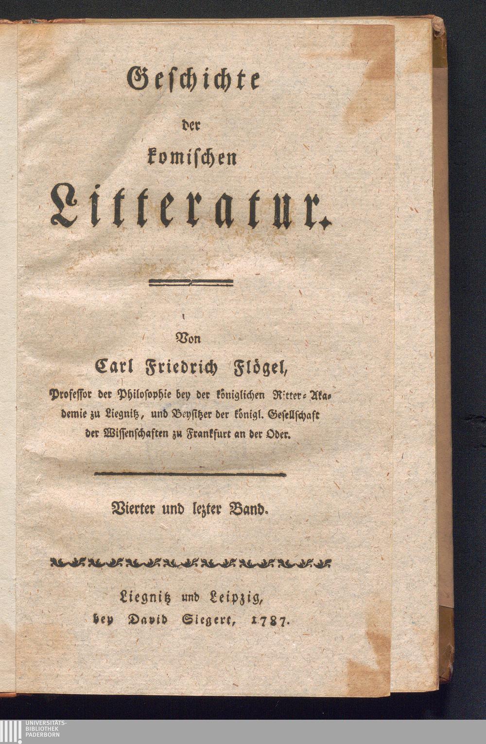Register über den zweiten Band der Geschichte der Komischen Litteratur.