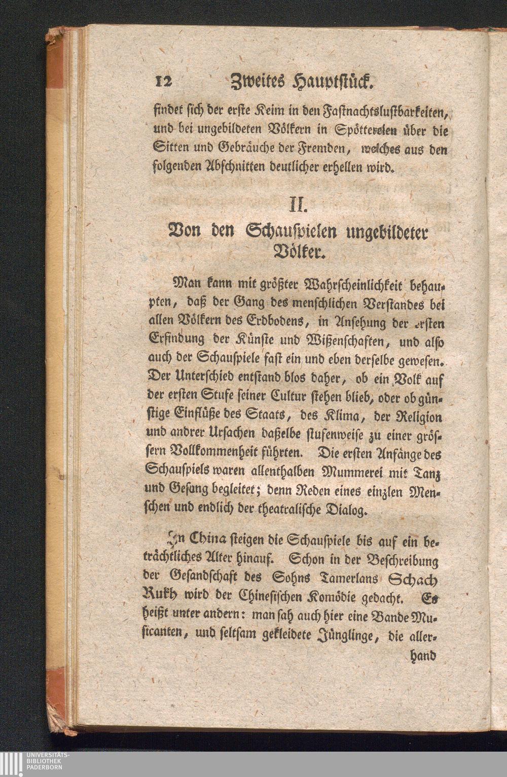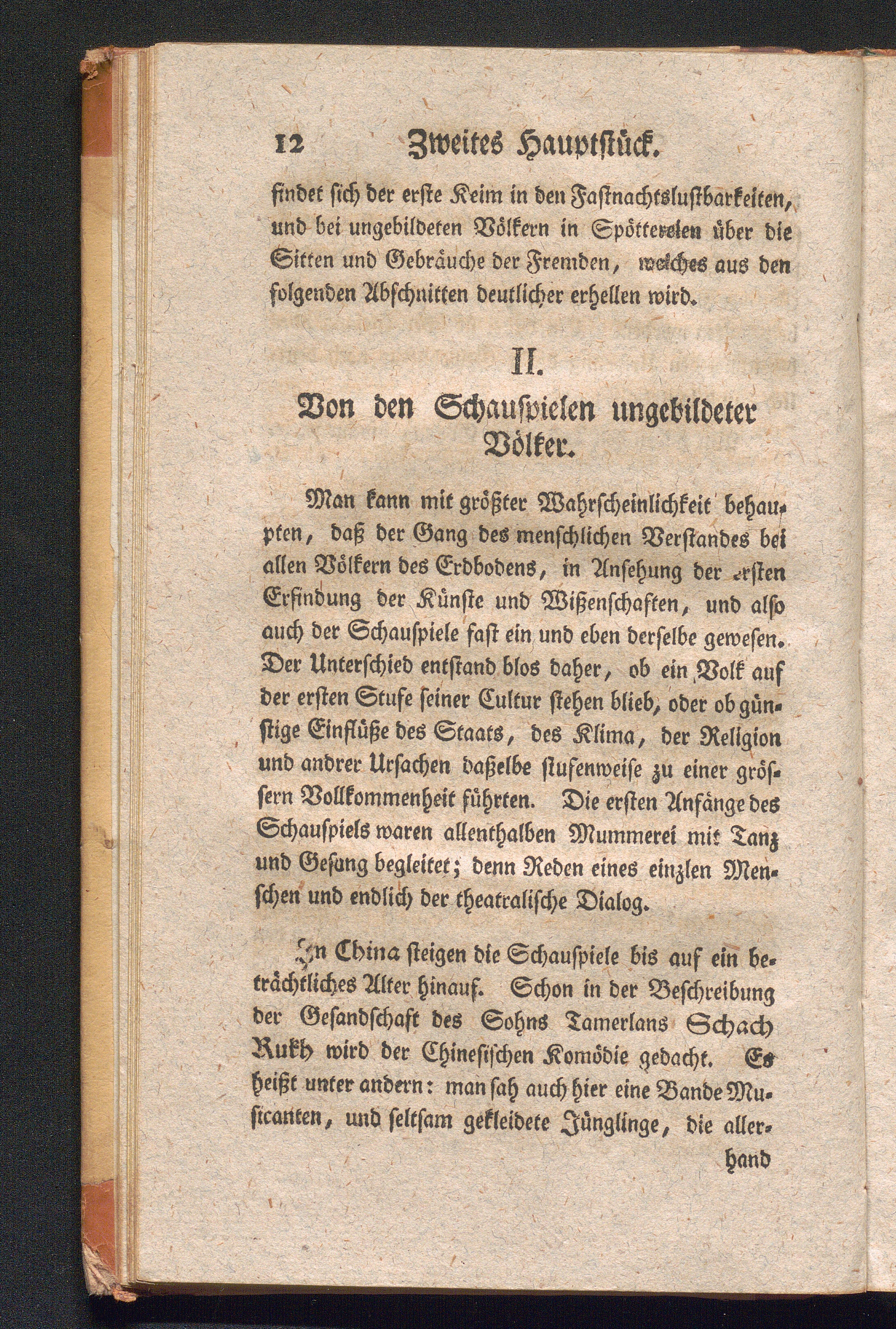 II. Von den Schauspielen ungebildeter Völker.