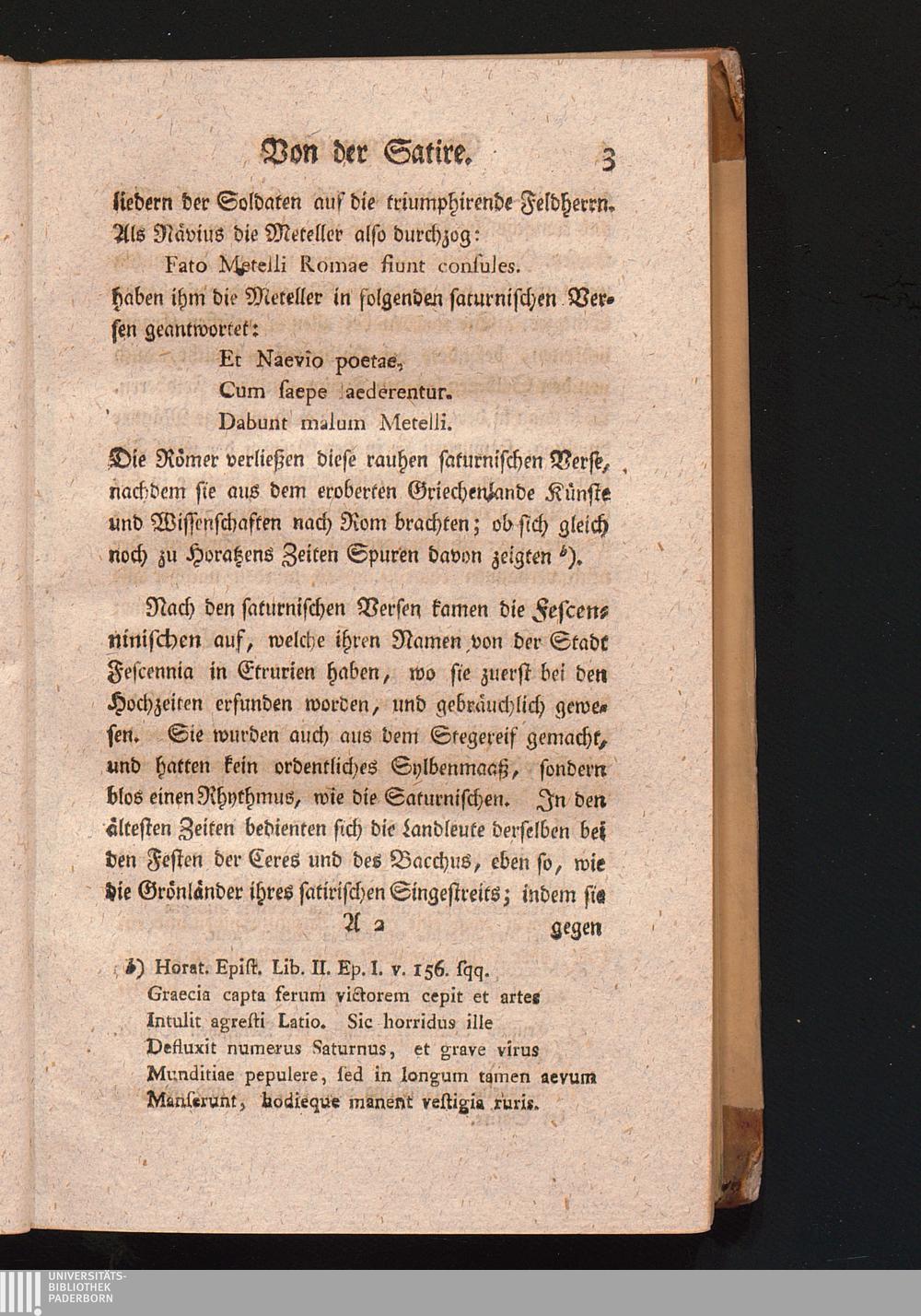 X. Von der Satire der Römer.