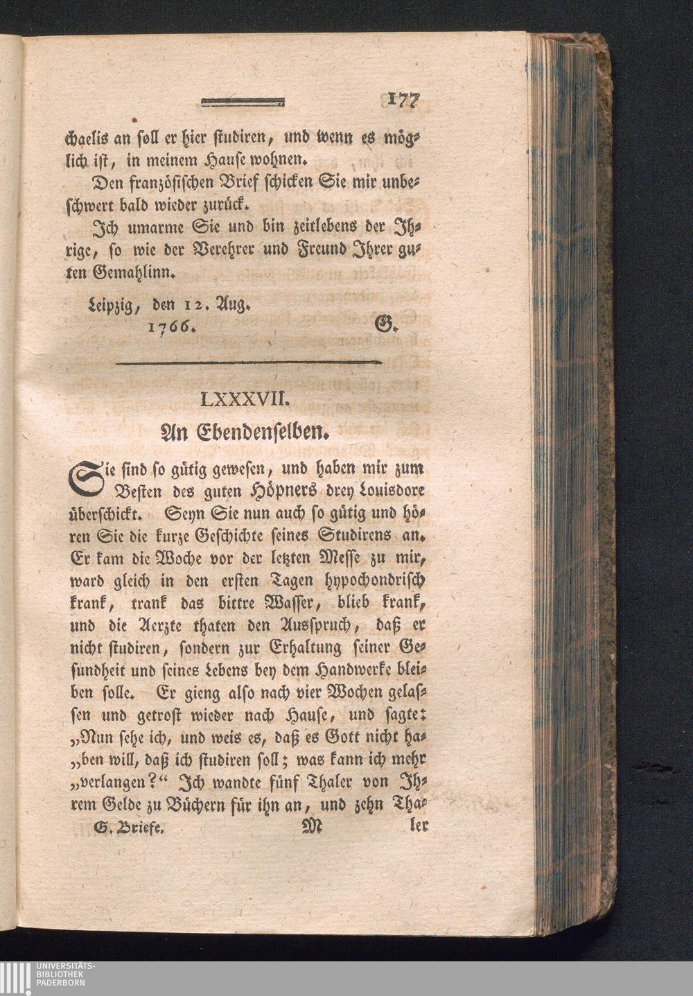 Christian Fürchtegott Gellerts Briefe, nebst einigen damit verwandten Briefen seiner Freunde / nach seinem Tode herausgegeben von Johann Adolph Schlegeln und Gottlieb Leberecht Heyern