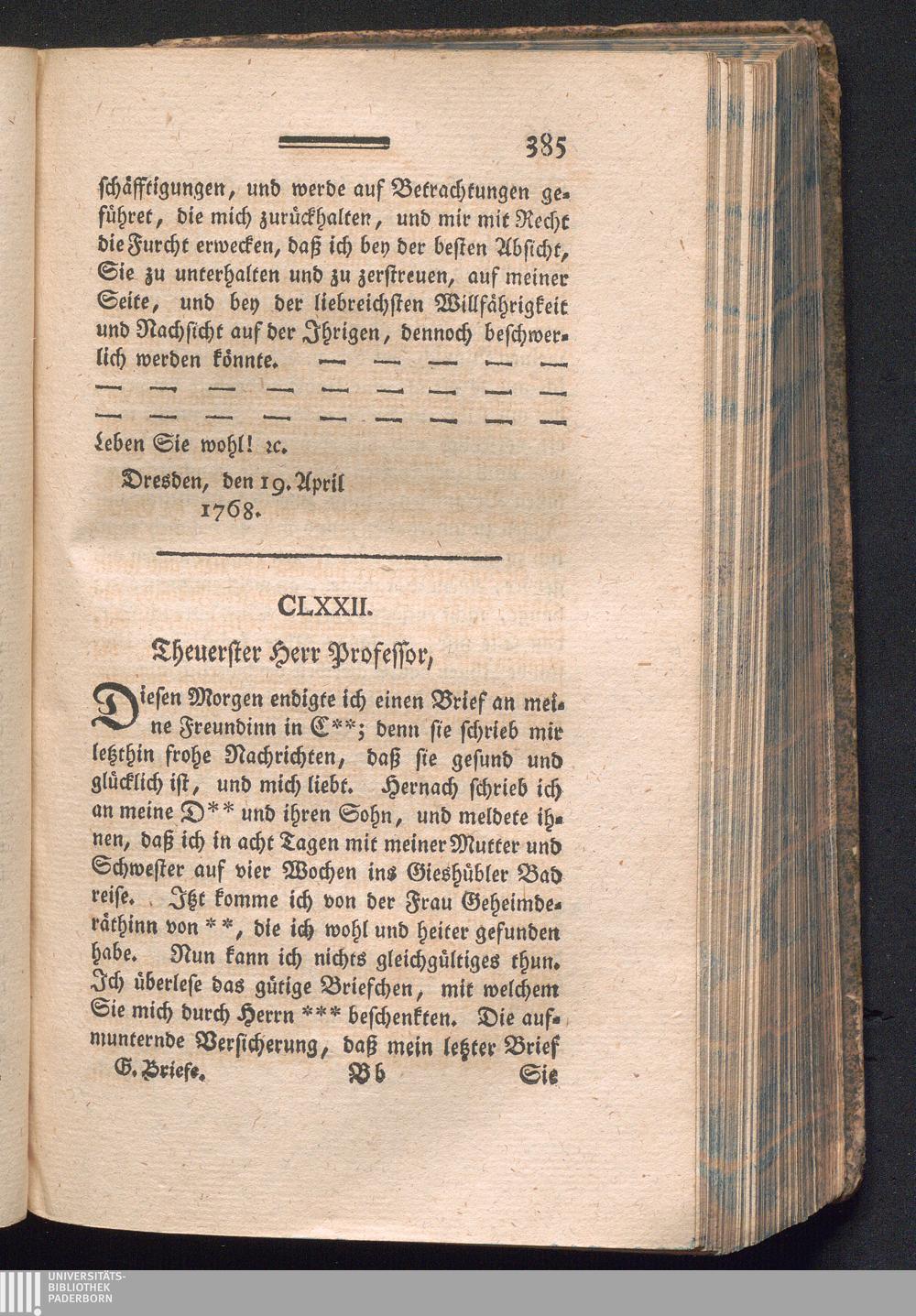 Christian Fürchtegott Gellerts Briefe, nebst einigen damit verwandten Briefen seiner Freunde / nach seinem Tode herausgegeben von Johann Adolph Schlegeln und Gottlieb Leberecht Heyern