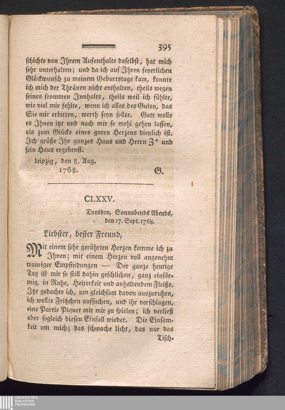 Christian Fürchtegott Gellerts Briefe, nebst einigen damit verwandten Briefen seiner Freunde / nach seinem Tode herausgegeben von Johann Adolph Schlegeln und Gottlieb Leberecht Heyern