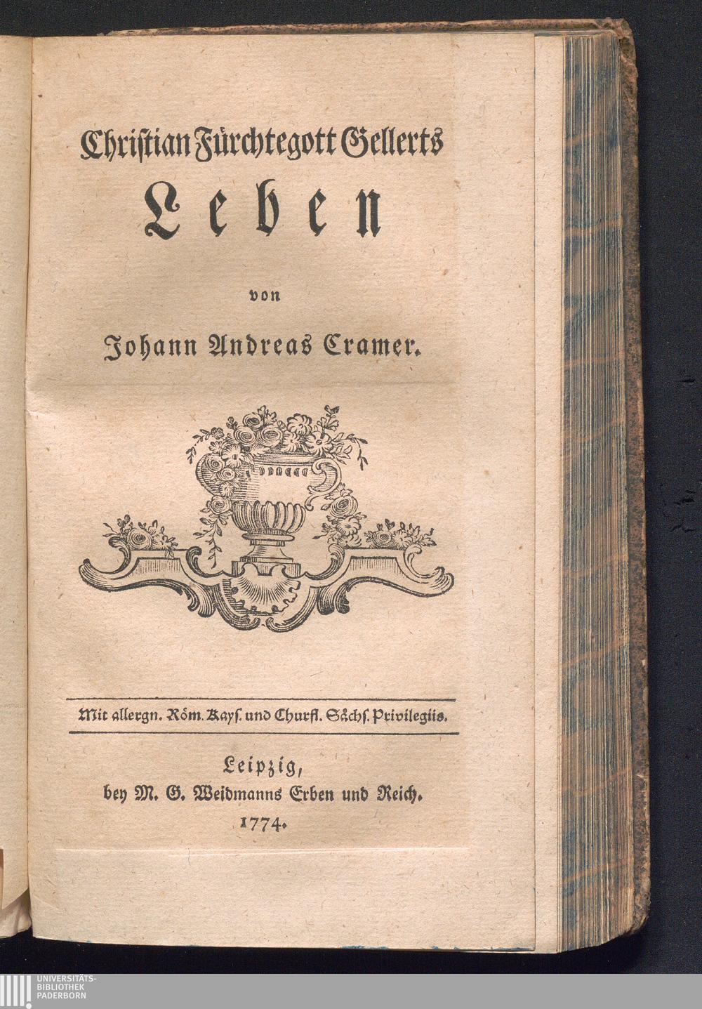Christian Fürchtegott Gellerts Leben von Johann Andreas Cramer.