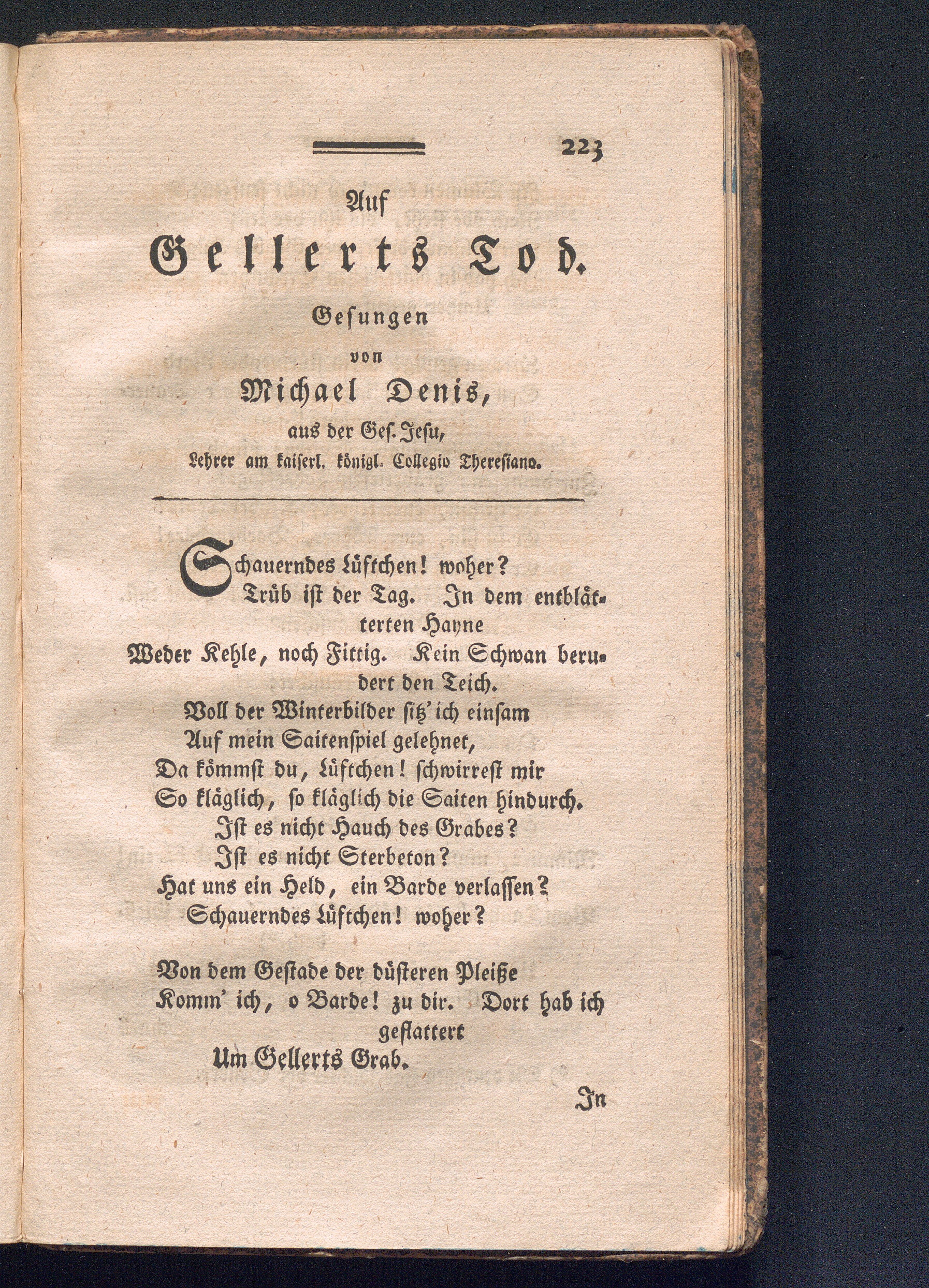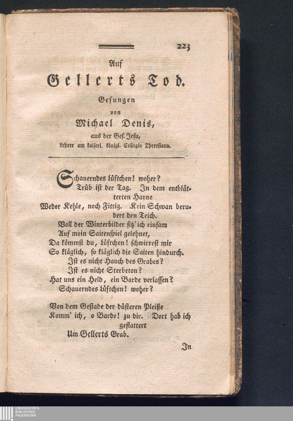 Auf Gellerts Tod. Gesungen von Michael Denis, aus der Ges. Jesu, Lehrer am kaiserl.[...]