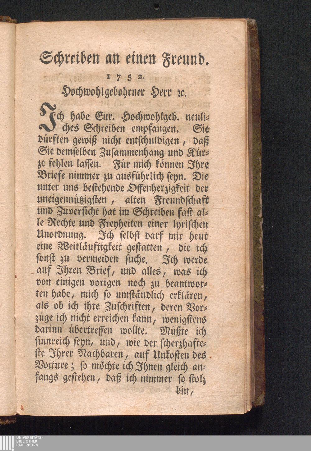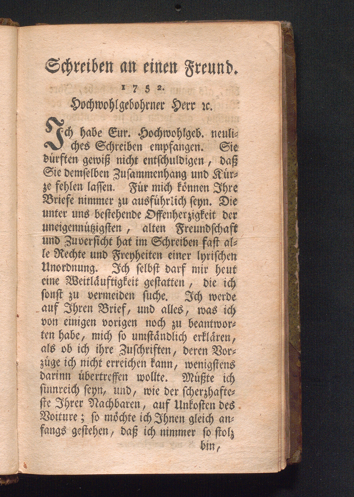 Schreiben an einen Freund. 1752. Hochwohlgebohrner Herr [et]c.