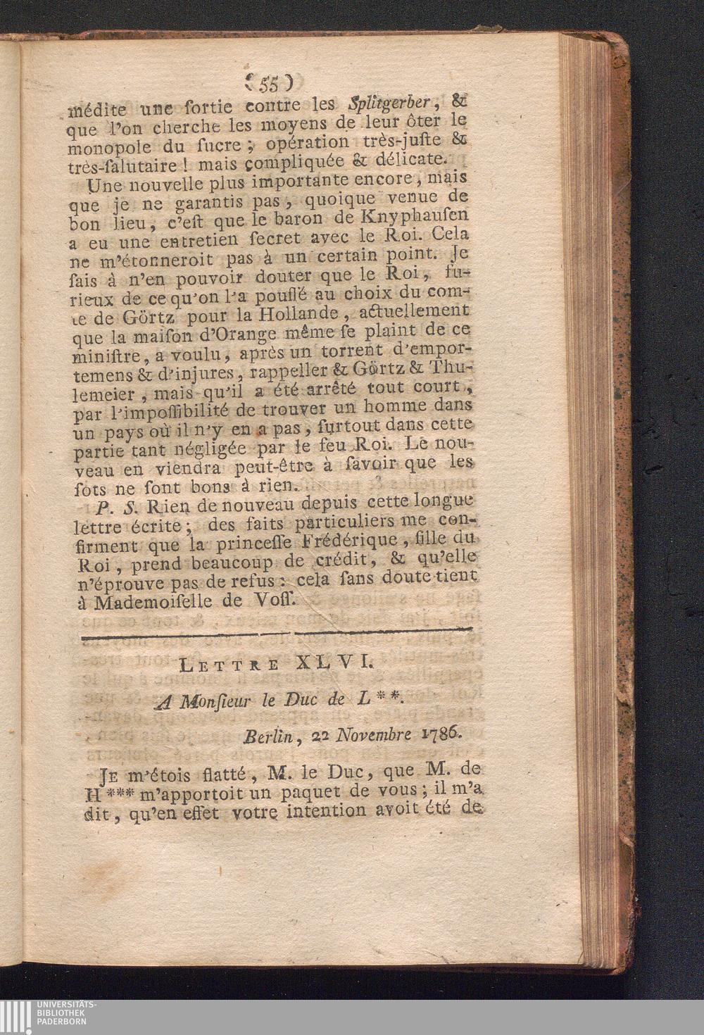 Lettre XLVI. A Monsieur le Duc de L**. Berlin, 22 Novembre 1786.