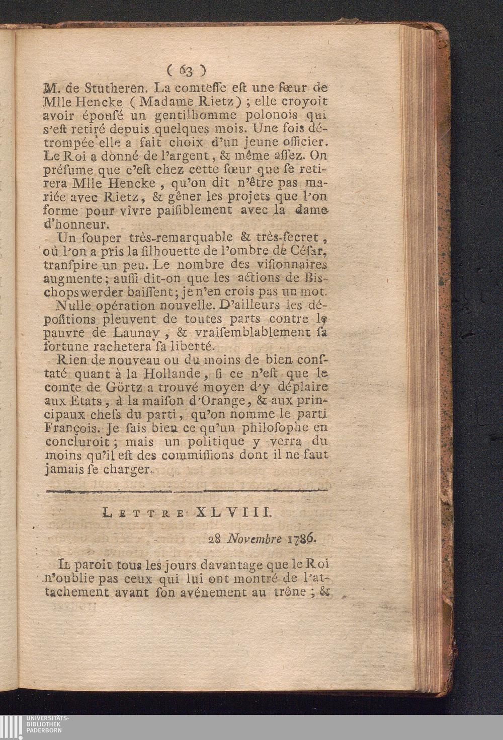 Lettre XLVIII. 28 Novembre 1786.