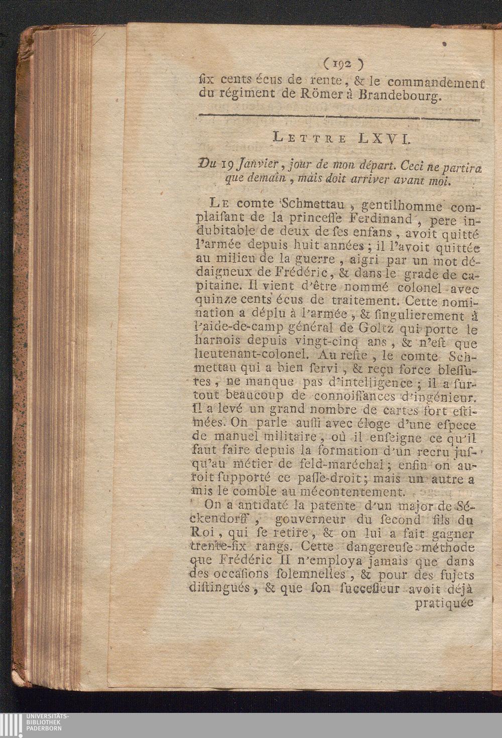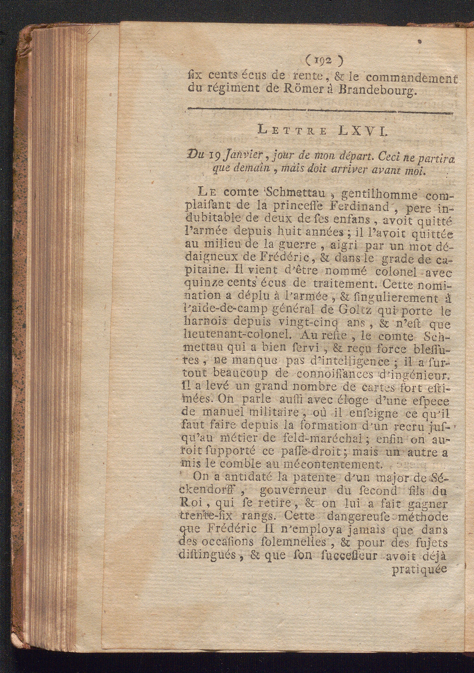 Lettre LXVI. Du Janvier, jour de mon départ. Ceci ne partira que demain, mais doir[...]