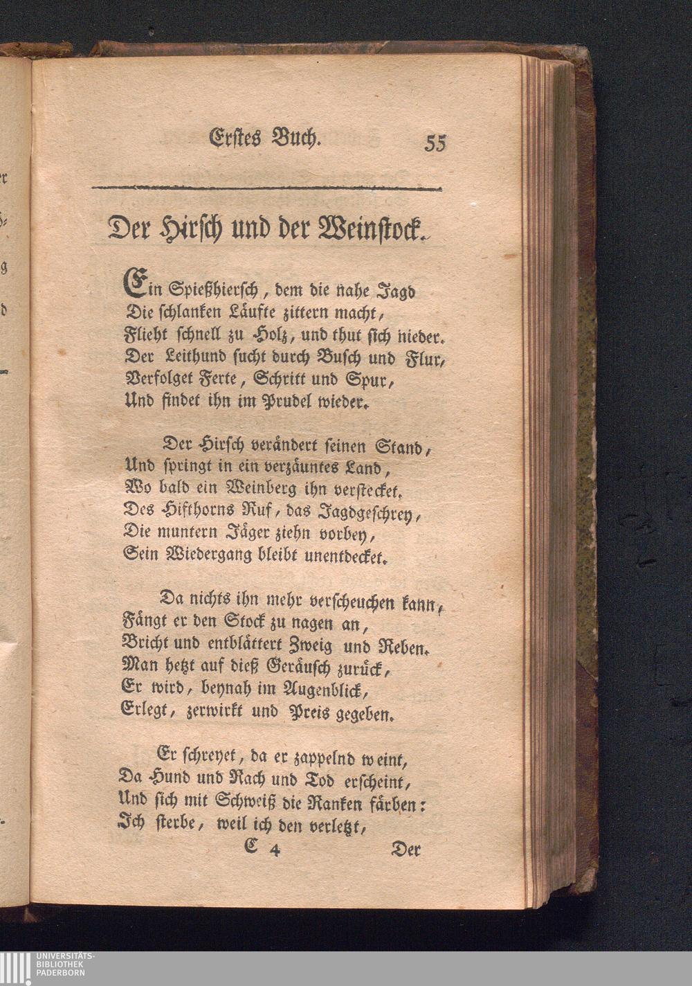 Der Hirsch und der Weinstock. S. Aesopi Fab. n. 65. und Gabrias F. 10.